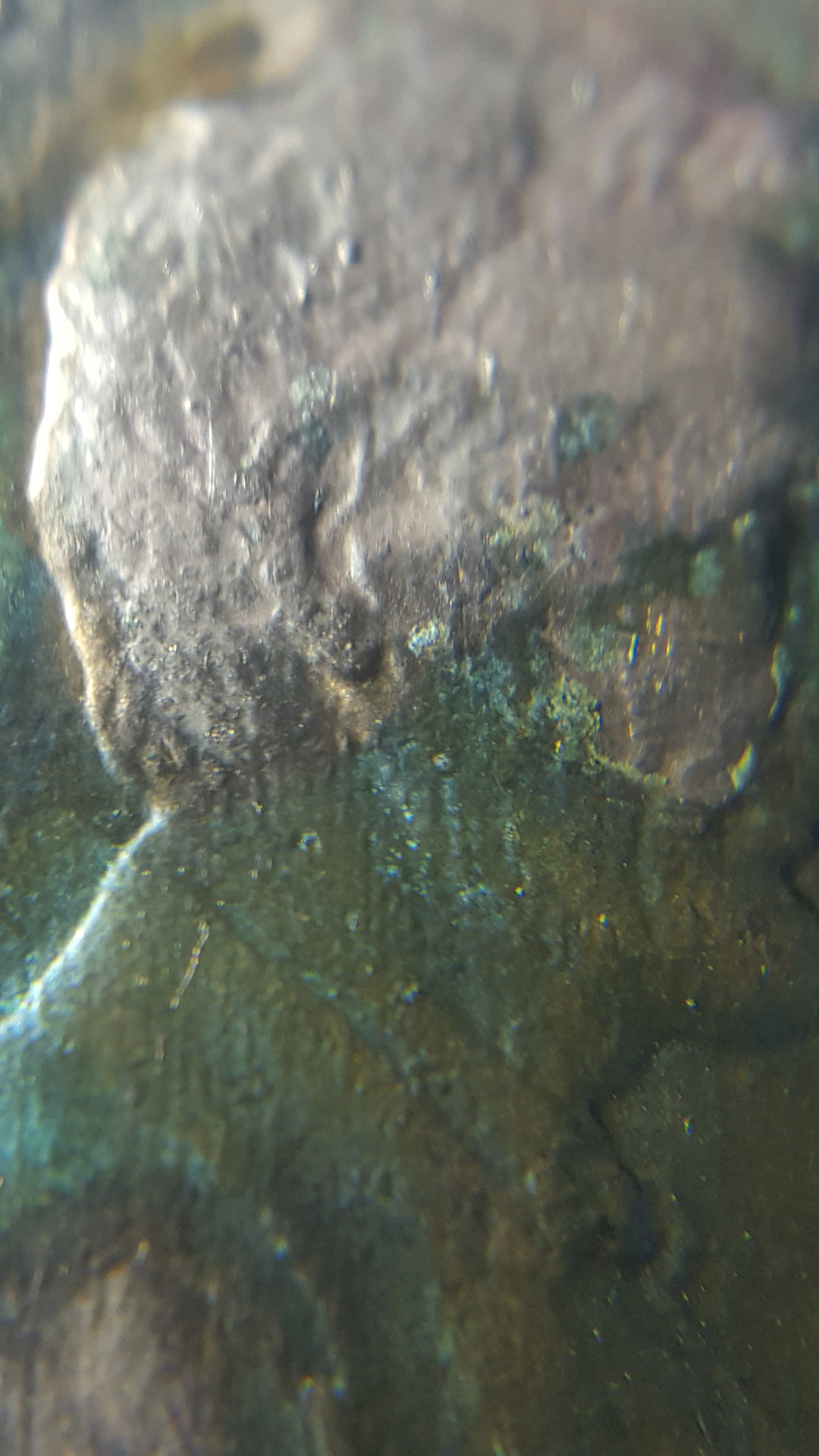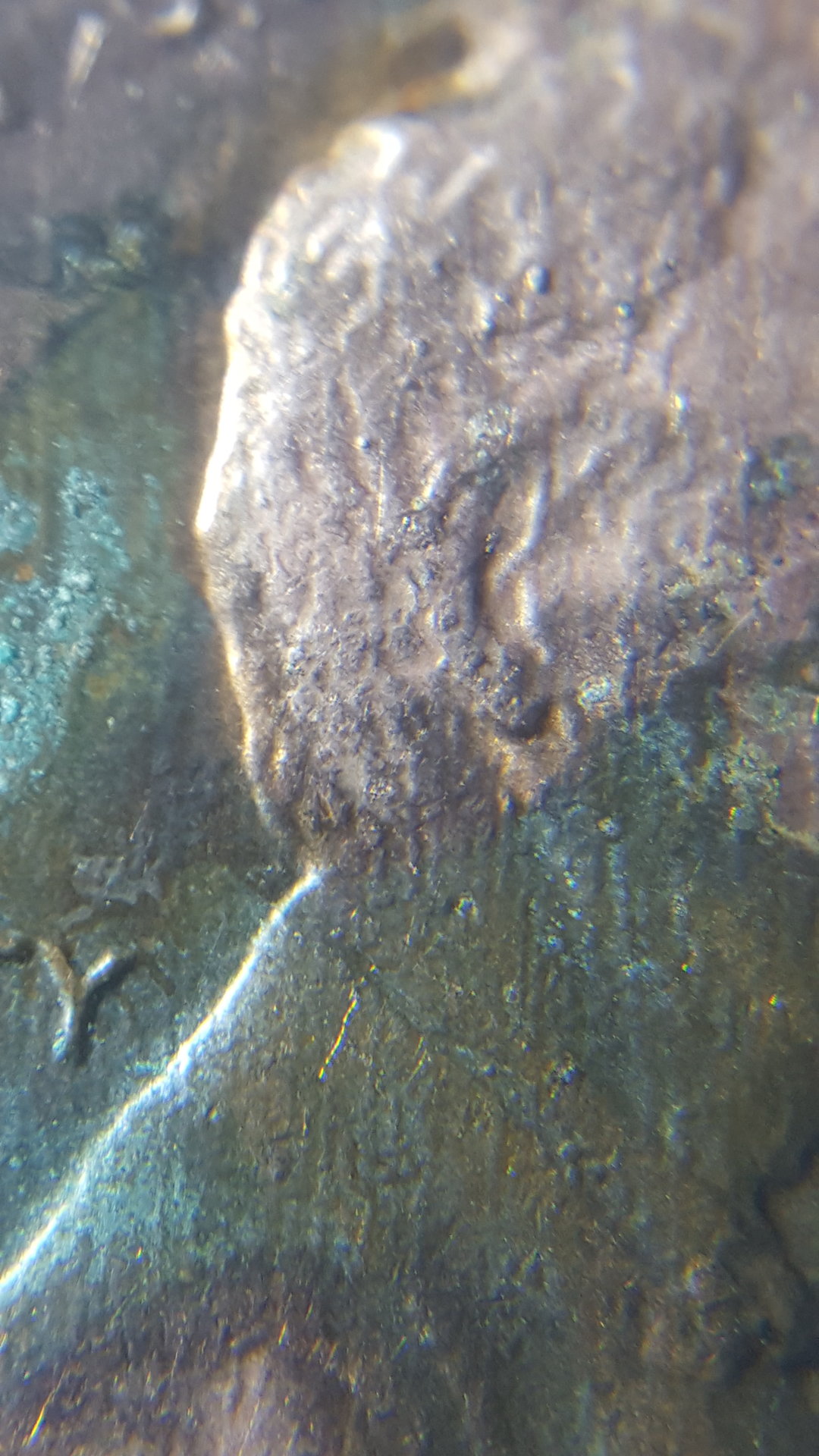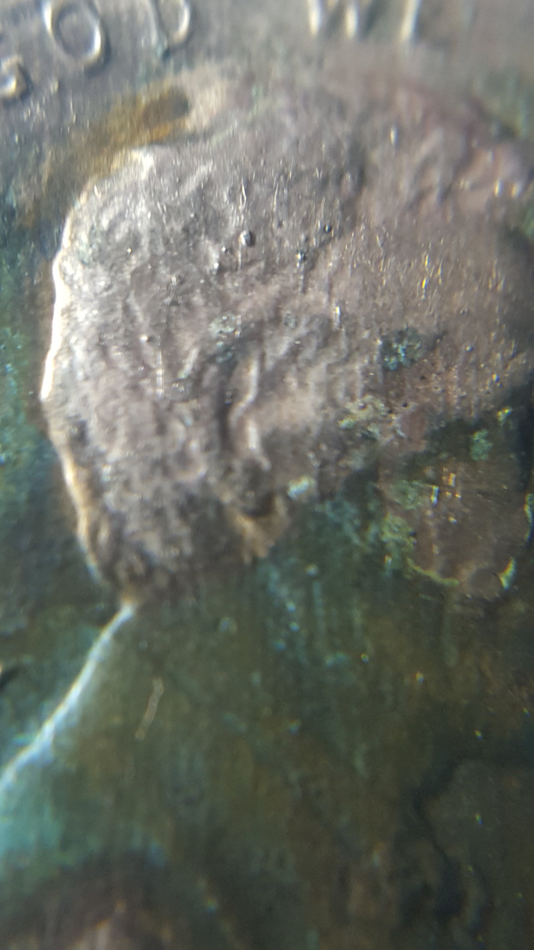 Your Copper Plated cent has Environmental Damage. You will see things that weren't there before when this occurs. Die Deterioration will also cause what you see. No mint mark means it was minted at the Philadelphia mint. They didn't use the P mint mark until 2017.. First and last time they did this.