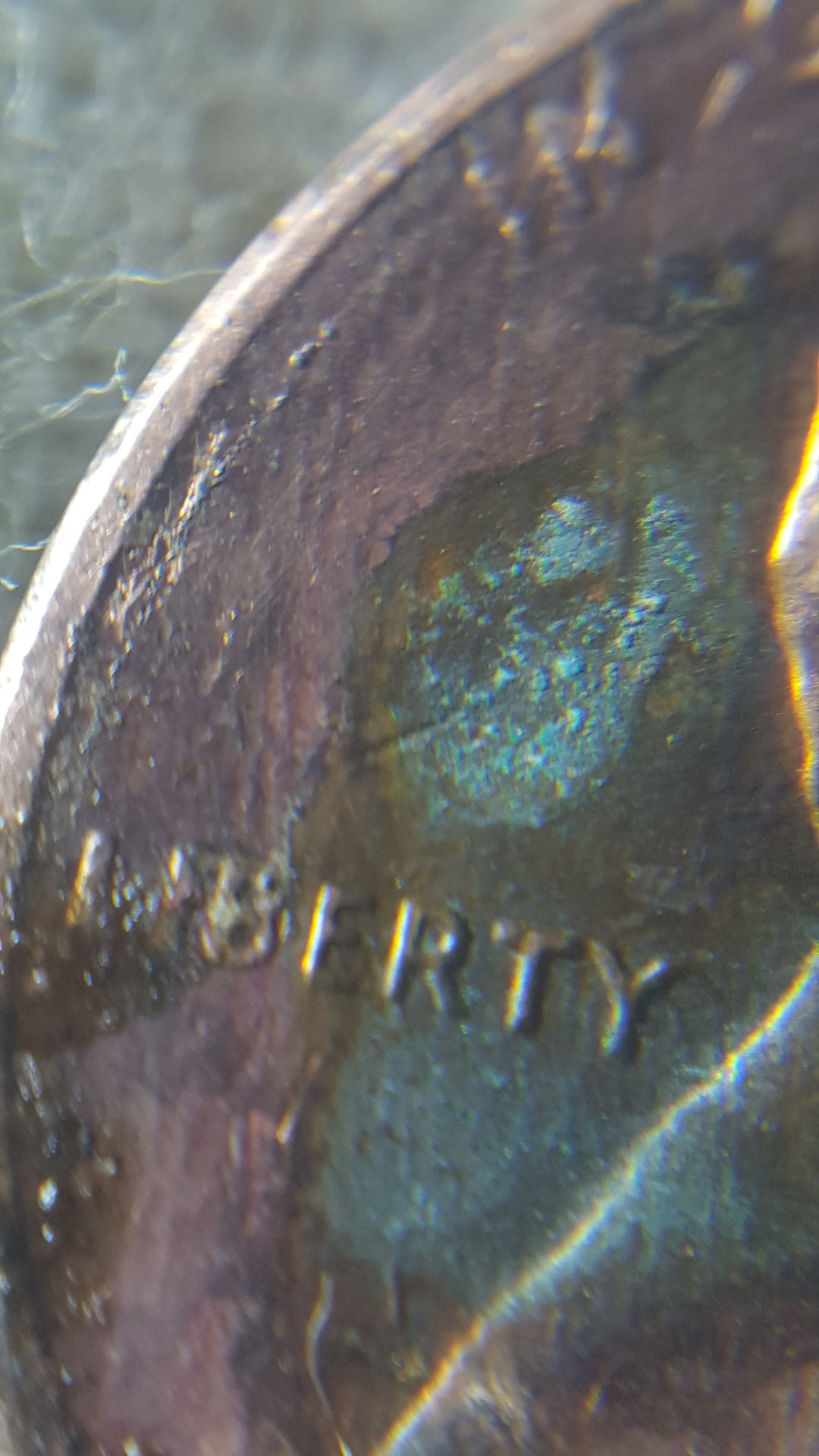 Can anybody tell me anything about this 1984 no mint mark Lincoln cent. The earlobe may or may not be doubled. Kind of hard to tell with the transition of coloring I think. And the other photos are of what seems to be numbers letters of that sort in random areas. After the word trust seems to be an e s. And on Lincoln's head there is lettering in such. If anybody out there can see this as well please let me know what I should do is the next step. And I know sometimes people say that your eyes can play tricks. This could be one of them situations. Any help would be appreciated thank you in advance. ?