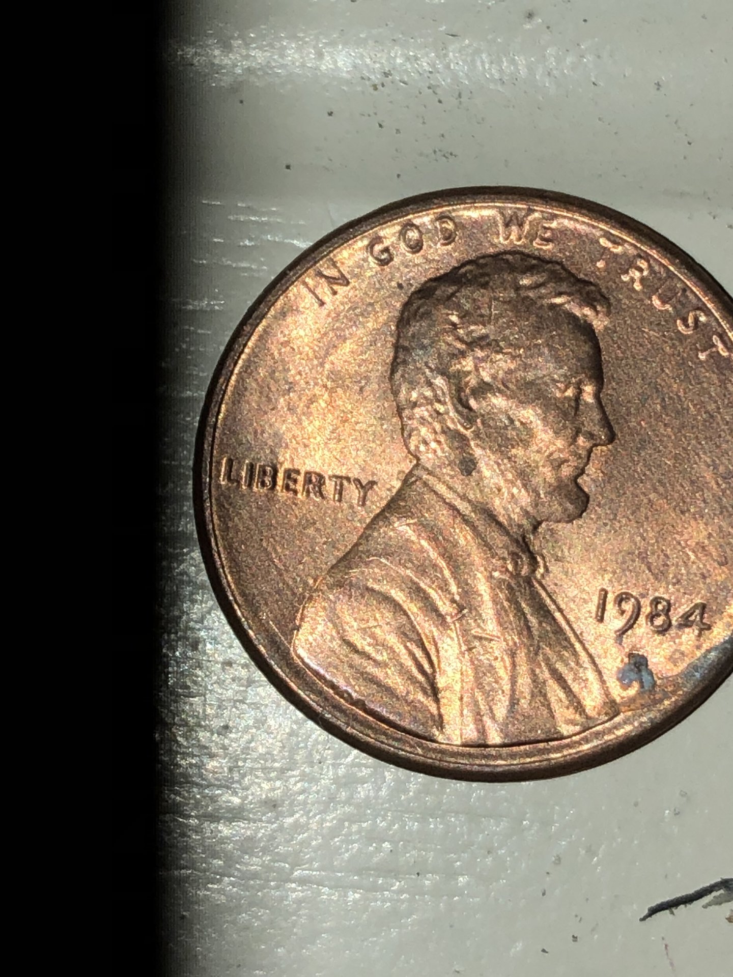 Could be plating blister or took a hit or...maybe this. https://www.cointalk.com/threads/1984-d-cent-double-ear.335248/#post-3420730