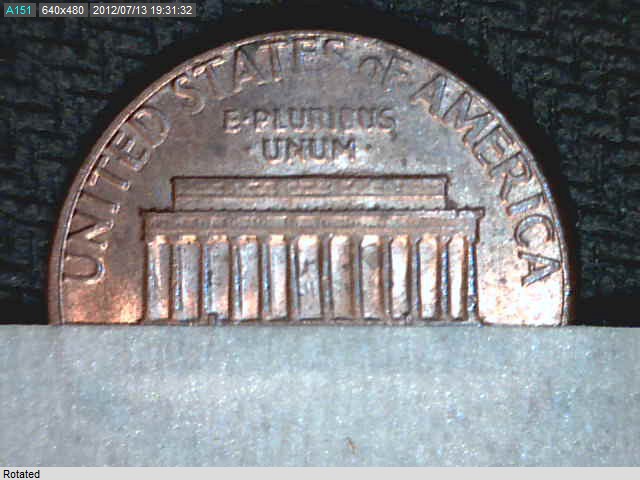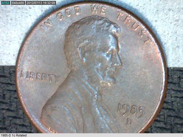Here is my 1985-D: I was doing what I do... scan the obverse, flip and scan the reverse. It looked a little off, so I flipped it again and again and again and again. Eventually, it drove me nuts because I couldn't figure out if this was really rotated or if my fingers are just too fat, so I took a piece of tape and lined it up to a section of the monument and flipped it. This is the result. 5 degree rotation? I'm guessing this is probably worth face value, but what I want to know is... is this amount of rotation enough to be considered rotated? As always, thanks for entertaining my posts!