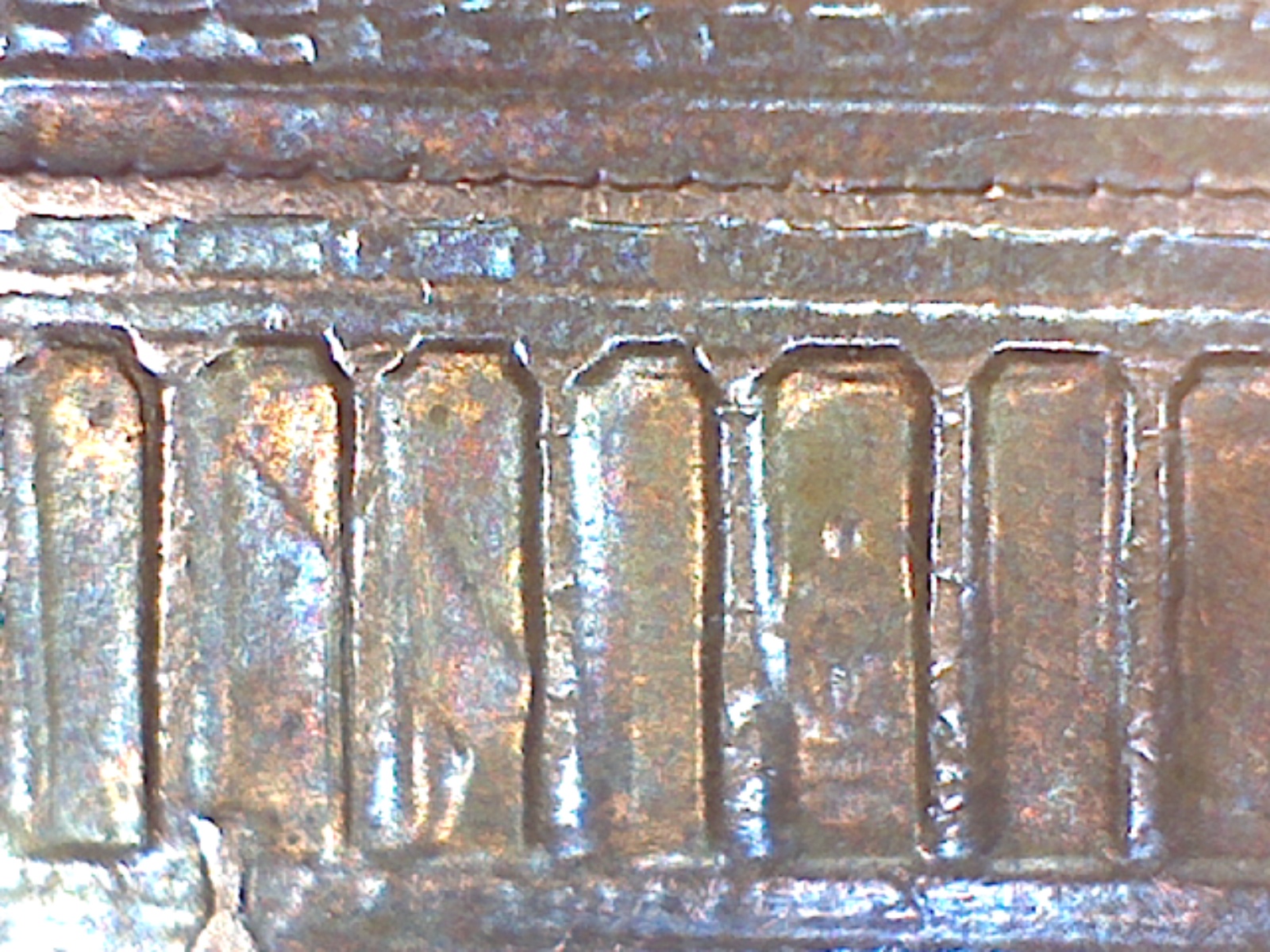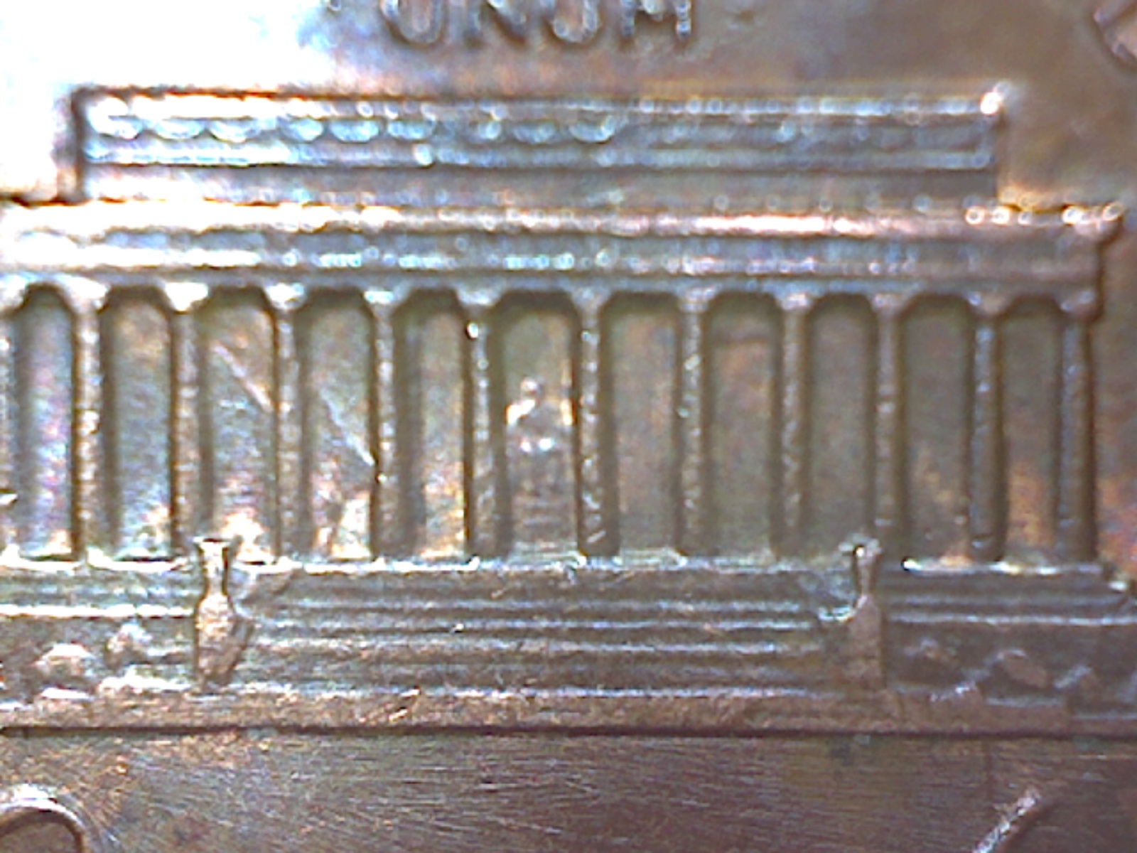 The marks in memorial bay 3+4 look like the neck/shoulder area of Abe's jacket usually found in these bays except it's in both. There are light marks in bay 8 but couldnt get them to show on camera and couldn't find any discernible markings on obverse.
