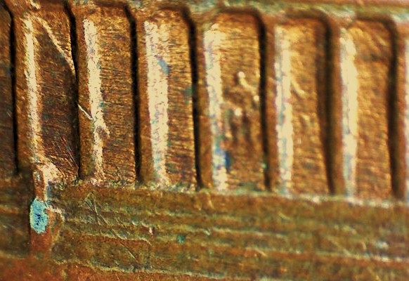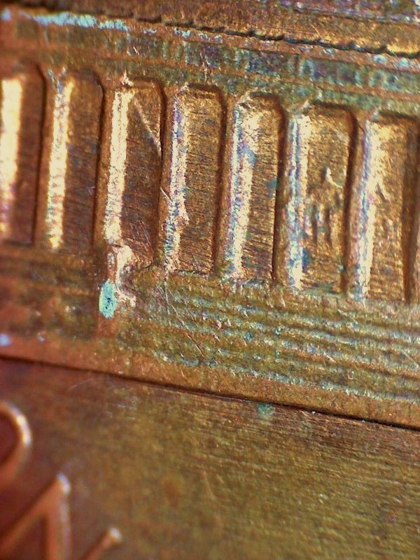 Look to right of Lincoln, almost looks like half of another Lincoln. There is also a "spear-like" die break/crack to the left of Lincoln.