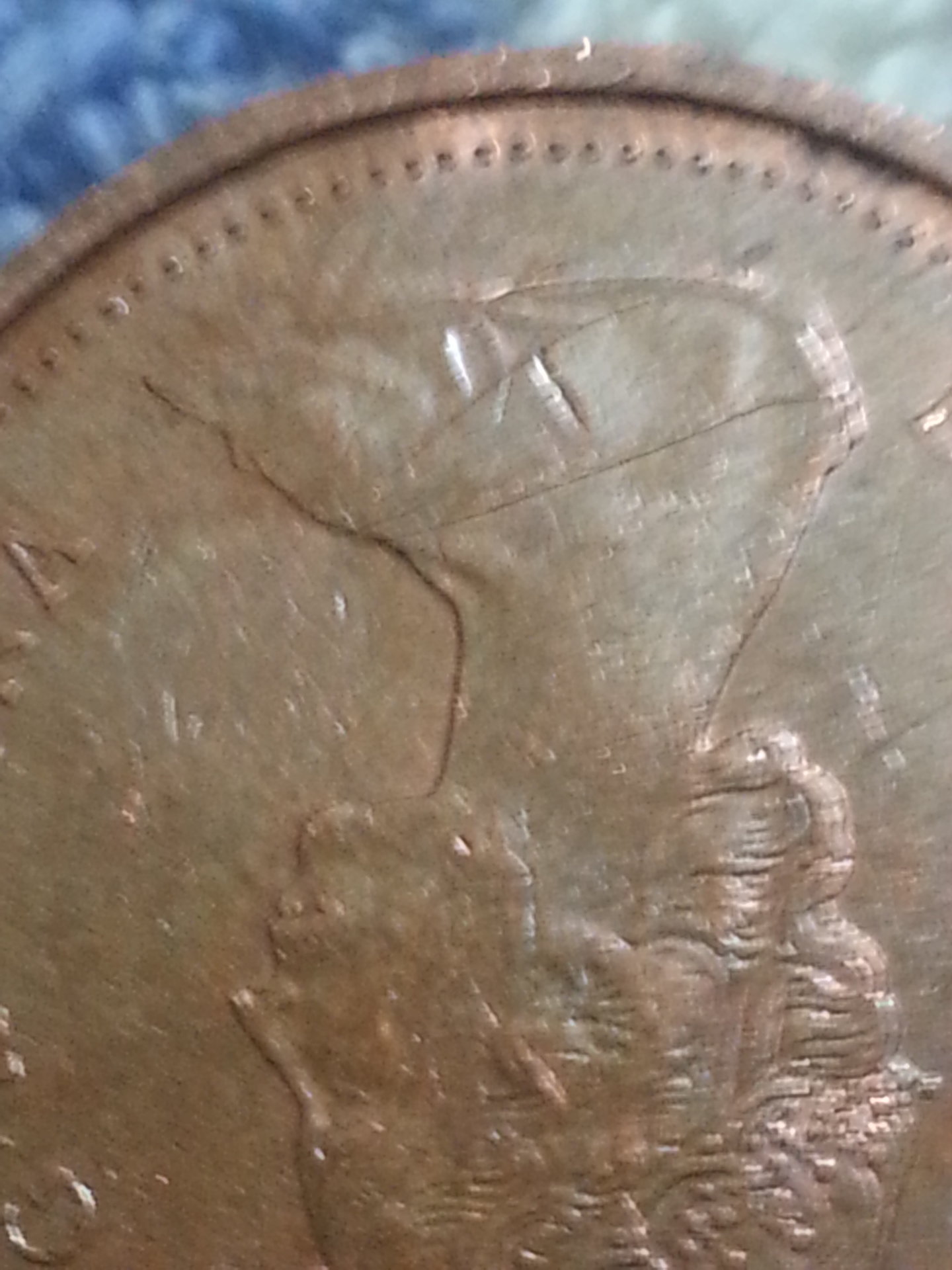 Here is a 1985 Penny it has a line along the bust which i can't determine if it was done after it left mint I have others (1985) that don't show it