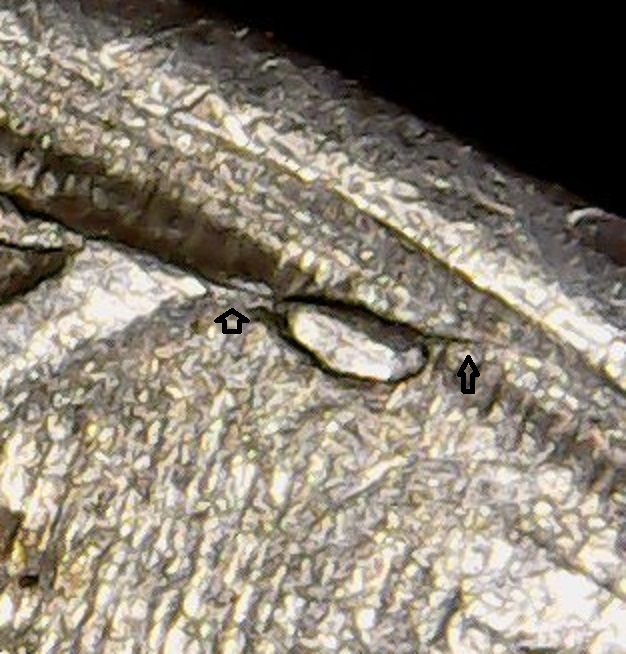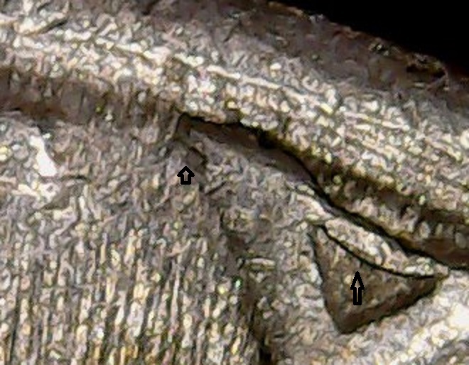 Die crack with the edges of the crack chipping away. No retained cud.