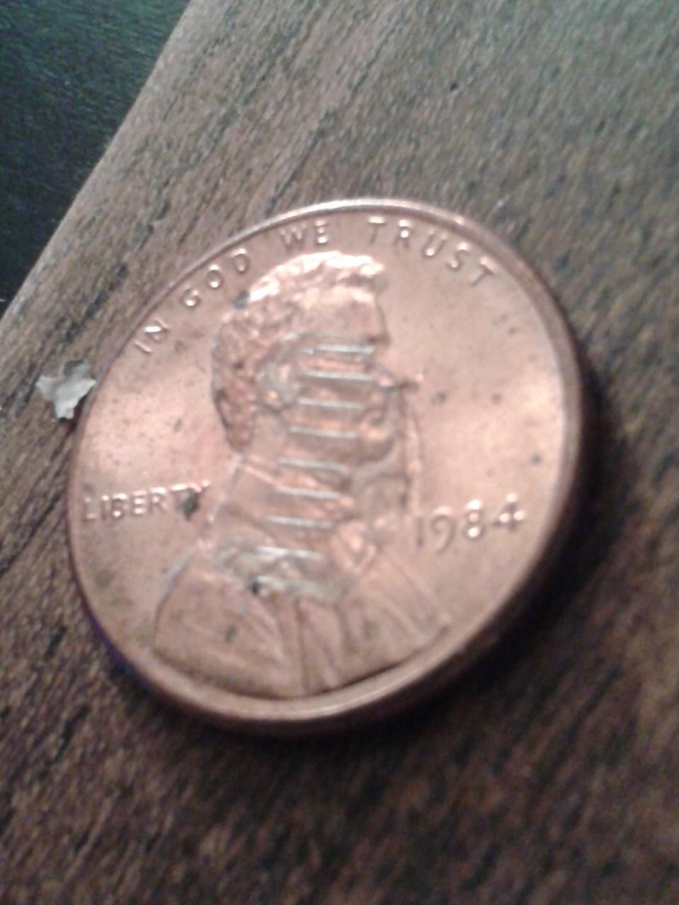 :smile I really like the look of this cent! I can't help describe what happened, but just had to say I really like it! Are there any problems on the reverse?