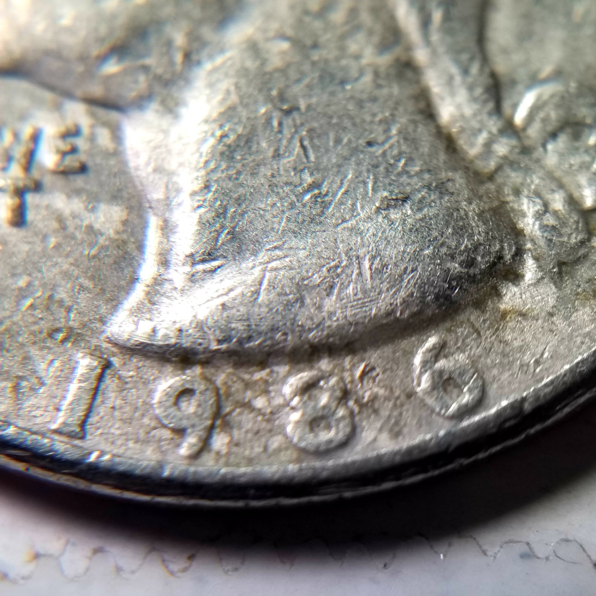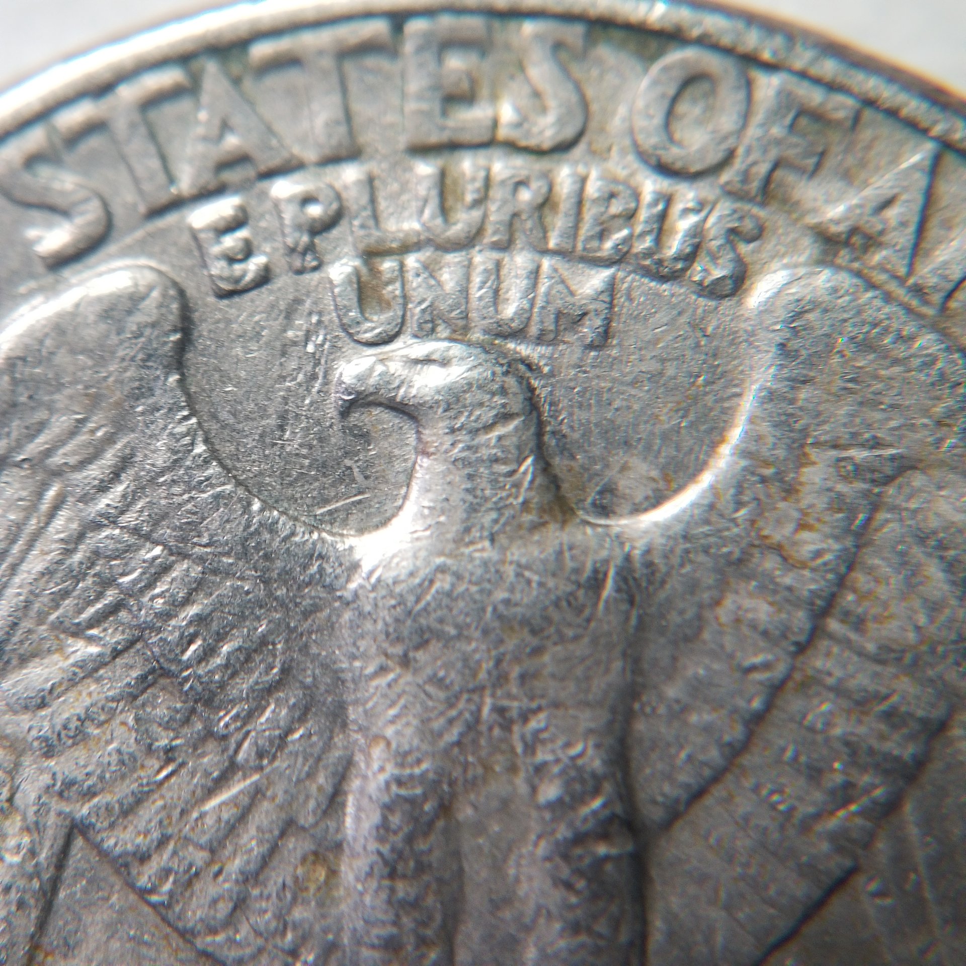 Okie dokie, Know this coin must have been in alot of pockets and had more than it's share in video games. But besides PMD was it also a victim of a die clash when struck? And if so on reverse on lower part of wing there is a floral design but doesn't resemble that of this Washington 25c. Does anyone know what it is? Thanks