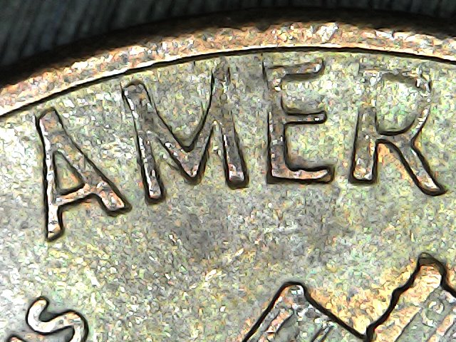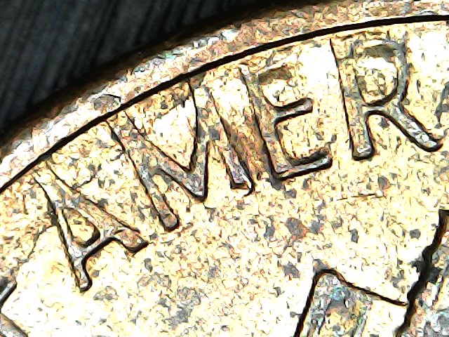 This explanation is borrowed from @desertgem It is die deterioration damage. Even though the dies are tempered, after thousands of coin, the steel slowly deteriorates ( moving to the outer edges) and the letters appear elongate. Round tent stakes of air jumpers usually show such damage at the top of the stake. It doesn't a huge amount of force, just the force used to make a coin after maybe hundred of thousands of blows. Jim Hope this helps Reed and Sparkles