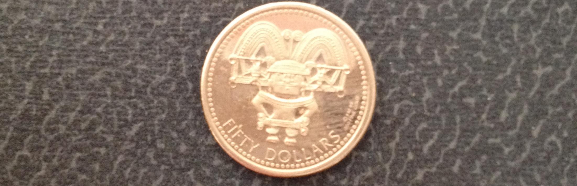 Its Krause KM #87 2.0657 grams .50 fine gold mintage number unknown Its listed as Ceremonial Dancer, but to me it kind of resembles a Hawaiian Tiki.
