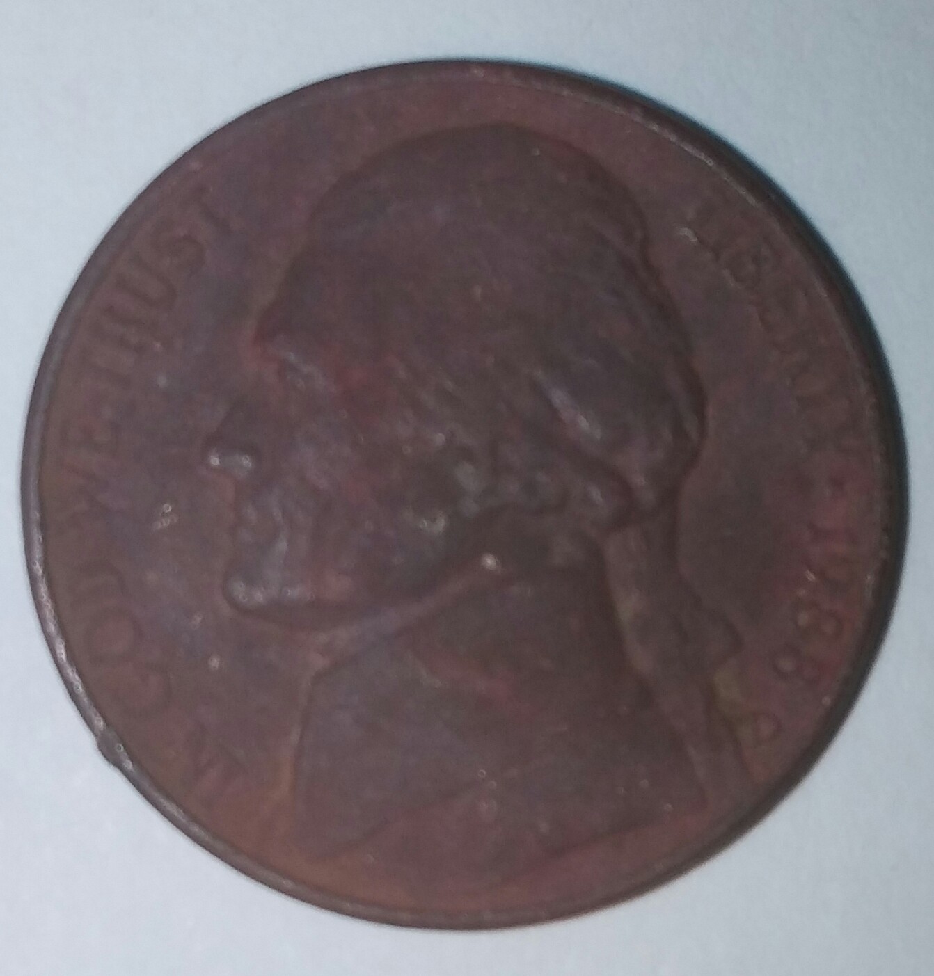 It's just the way the nickel tarnished . It could have been on the ground for awhile or maybe through a washing machine . I've seen some pretty colorful ones though .
