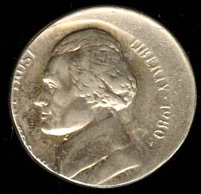 Off-centered strike. I also have a Lincoln cent, Washington quarter, and Kennedy half dollar struck off-center also. Jefferson's been on the Nickel a long time. Can't blame him for trying to sneak off the obverse. Like in your coin. Maybe it's about time he was promoted to Dime status? LOL