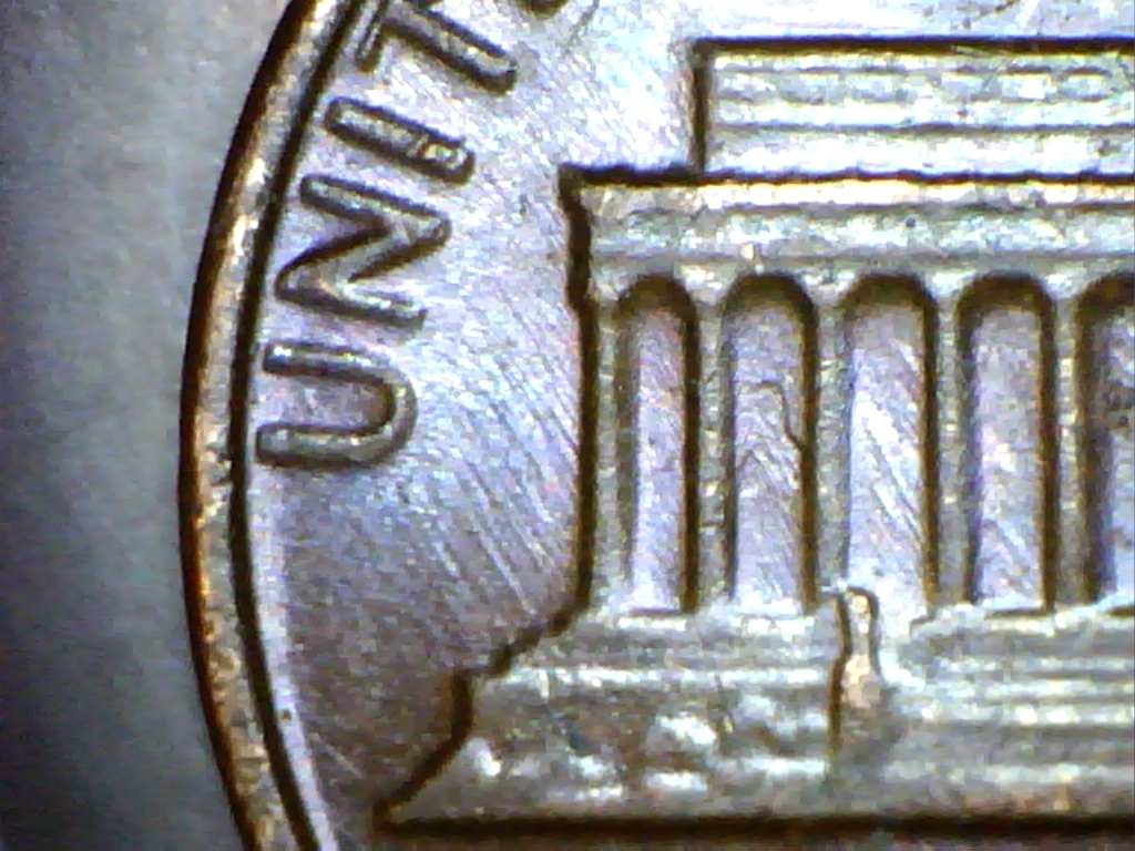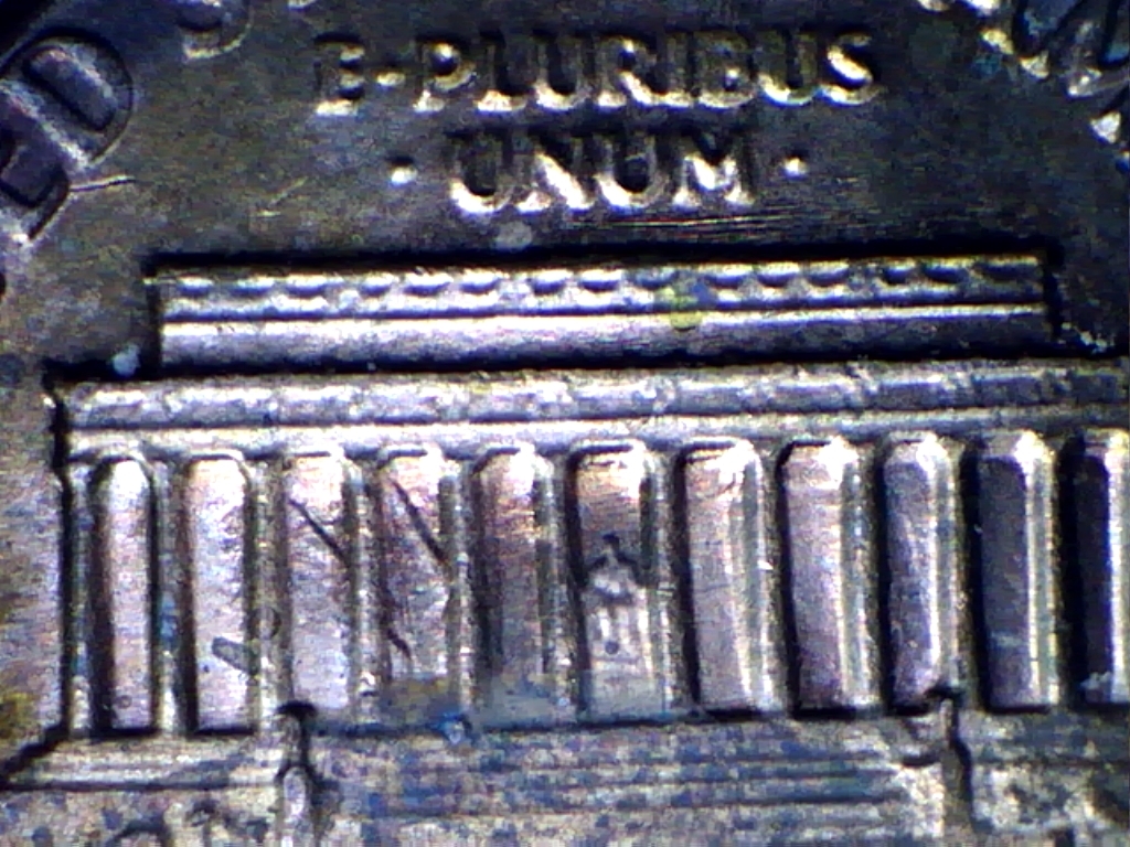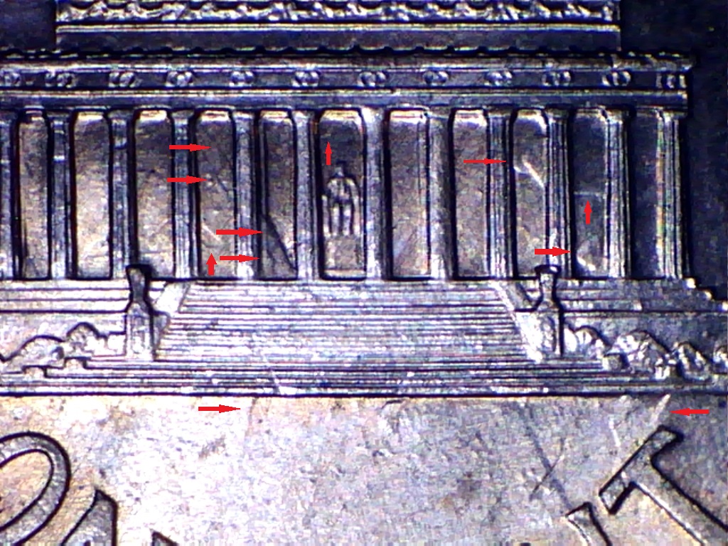 Thanks Ken, I know this is real as I see it in hand, and I meant to say the spaces between the pillars. I know not everyone will see it as clearly as I do. My next question would, does this happen often and is it a keeper that's worth anything at all. As I said, I will have better pics next week but right now all I have is my scanner. Thanks for the link also. Mine is pretty darned close to the newer cent overlay on the reverse but may have had a very slight rotation.