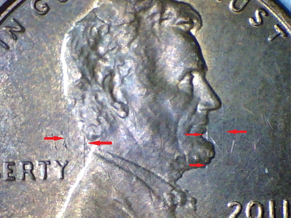 yea u can find a lot of them, especially from 80's, not really worth much unless u find one that is extreme, if lucky u might get someone to pay a buck for it on ebay, i got a couple penny tubes full of em, when u find a cent with lots of abrasion lines, usually means a clash an they tried polishing it out..heres a few i found recently..