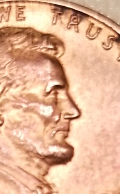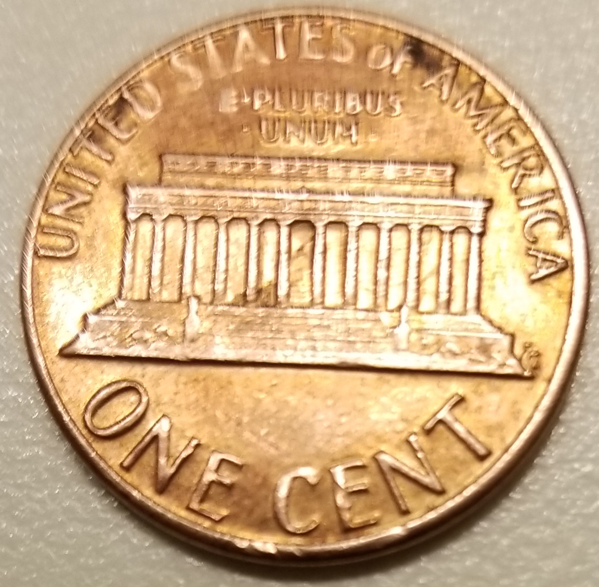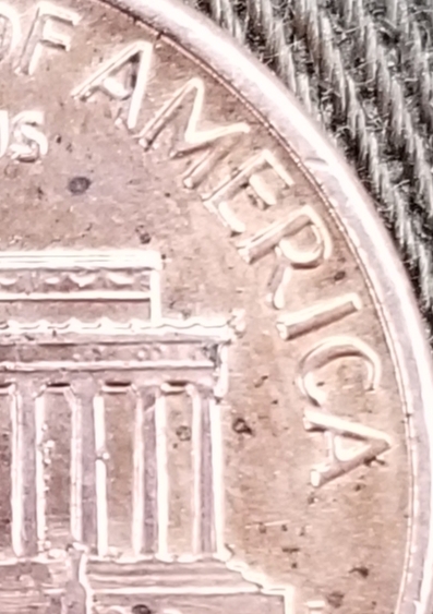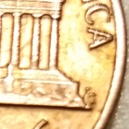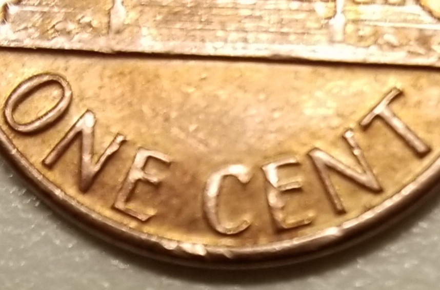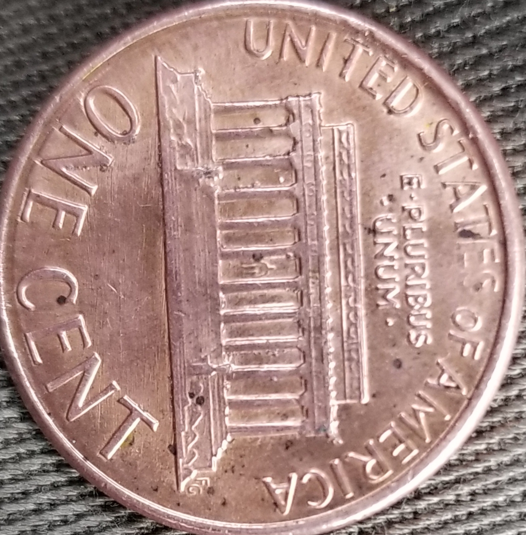 Obverse side: Lincoln's face, eye and the hair Reverse side: ONE CENT and the initial. Is it connected to the memorial. I tout there is a gap in between