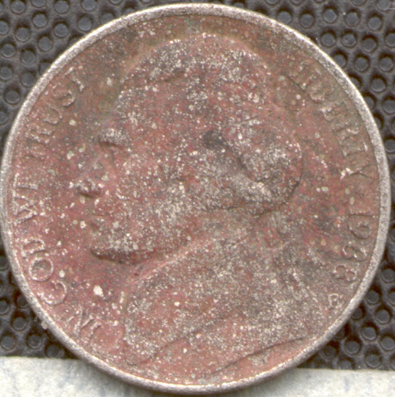 Nickels are not clad. (They are a uniform 75% copper & 25% nickel throughout.) Your nickel has environmental damage, possibly from being buried or being exposed to a harsh chemical. It is not an error.