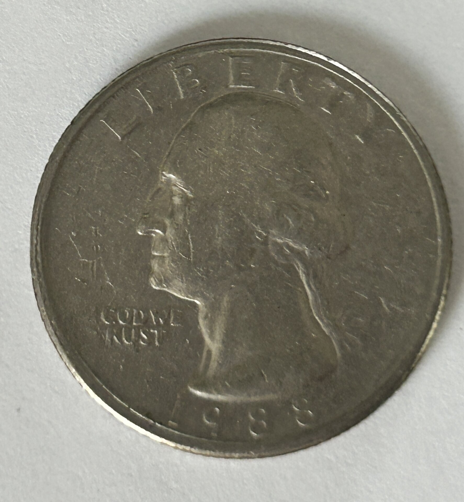Filled die/struck thru grease/debri.