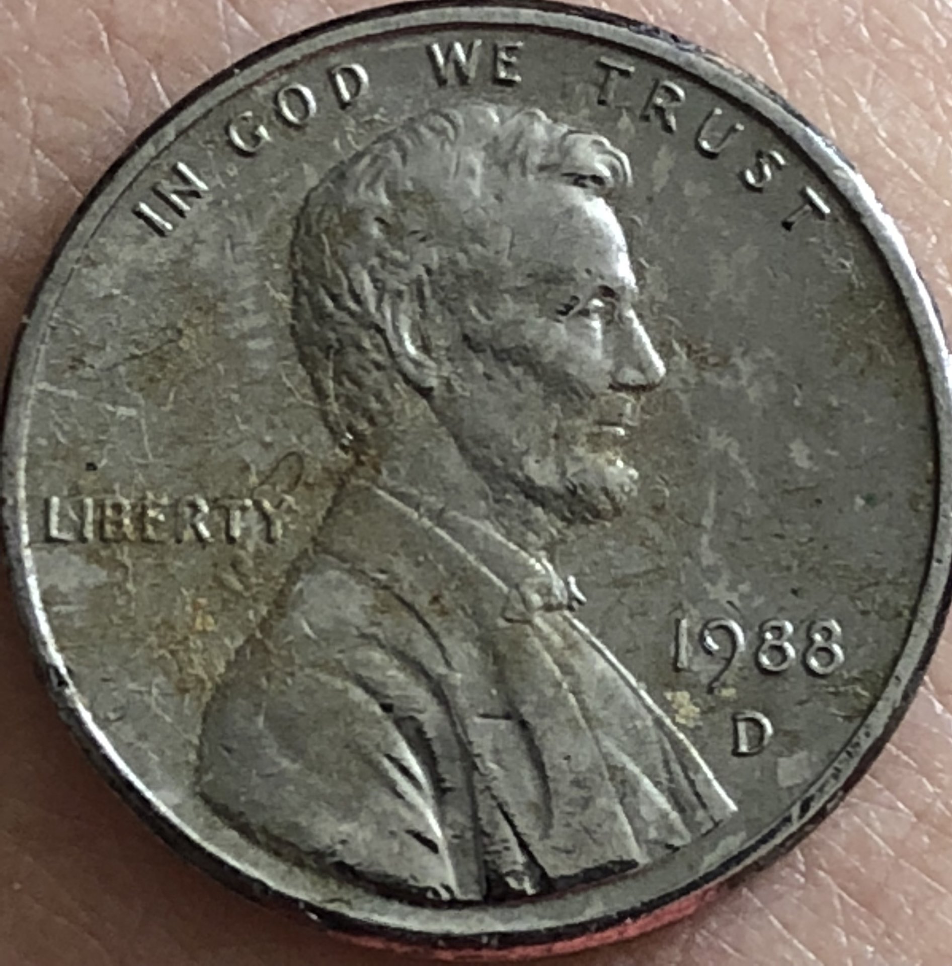 I have a Lincoln penny that is 1988 D that is “shiny silver” in color and is highly magnetic it also appears to be double stamped on the ER in liberty, I think it has the lines in the “G” with the FG designers initials on reverse.. indicating it’s an 89’ reverse coin. It weighs 1.6g and it has what appears to have 2 puncture holes on the reverse. It appears to be a true mint coin but I can’t find anything with its exact description except when researching error coins..just curious what it is