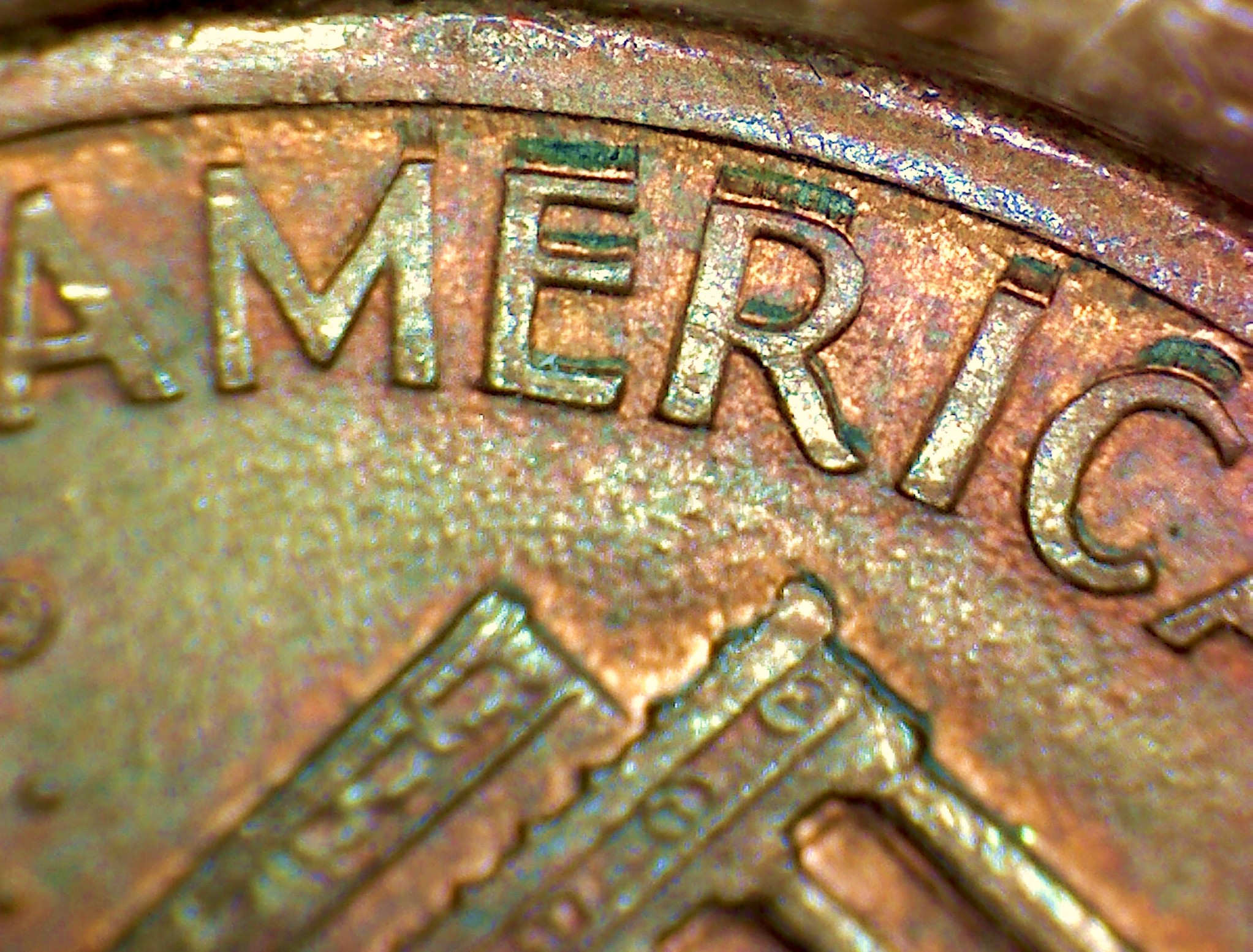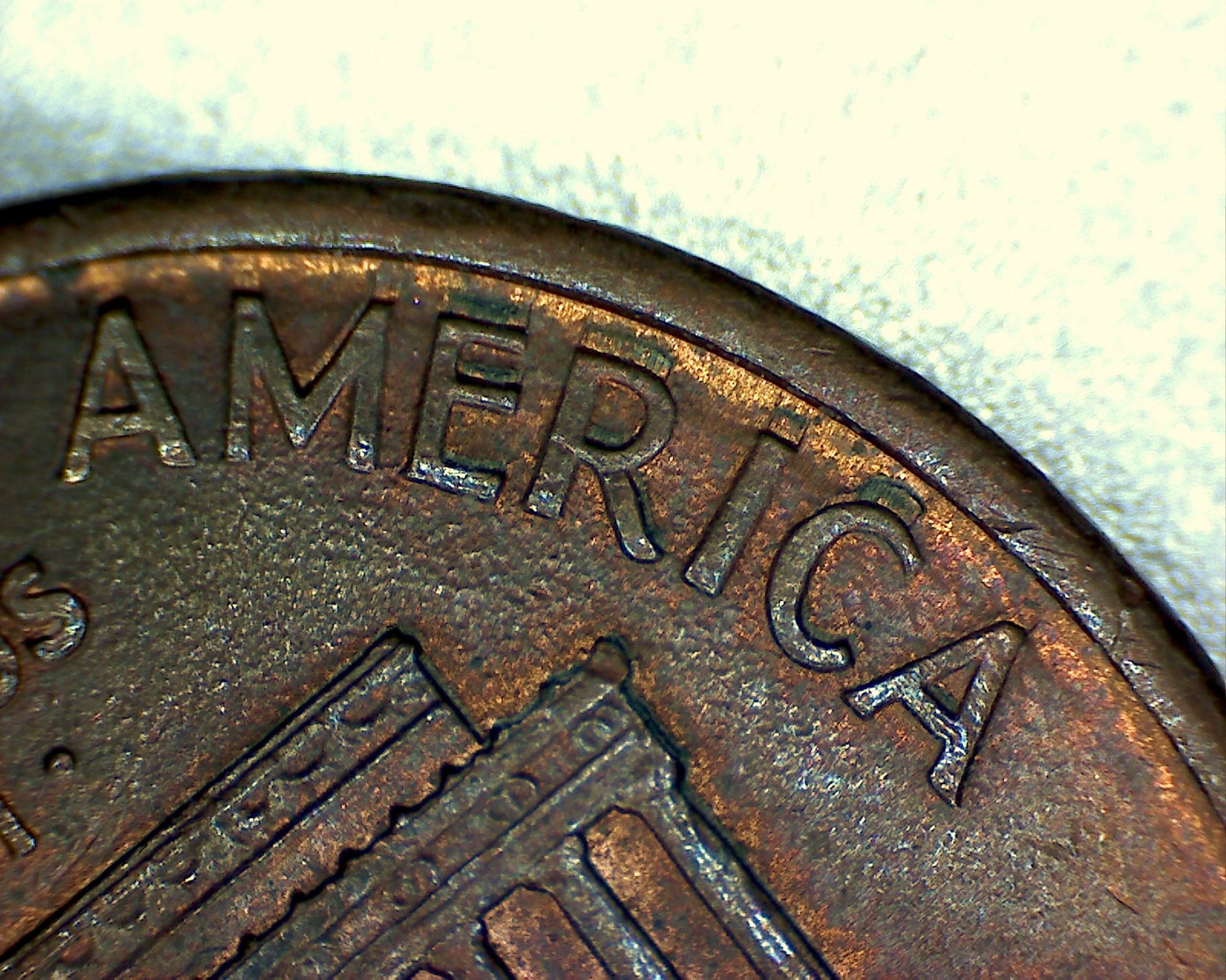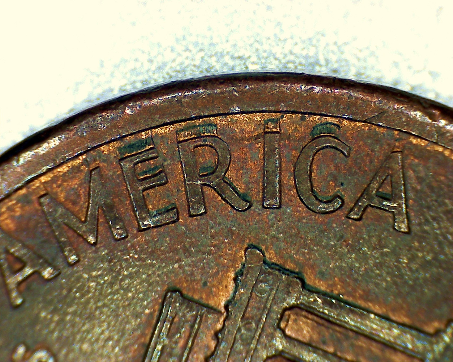 I believe this may be split plate doubling , which is caused by the copper plating being stretched and forced up into the letters of the die causing the copper plating to crack and expose the zinc core.