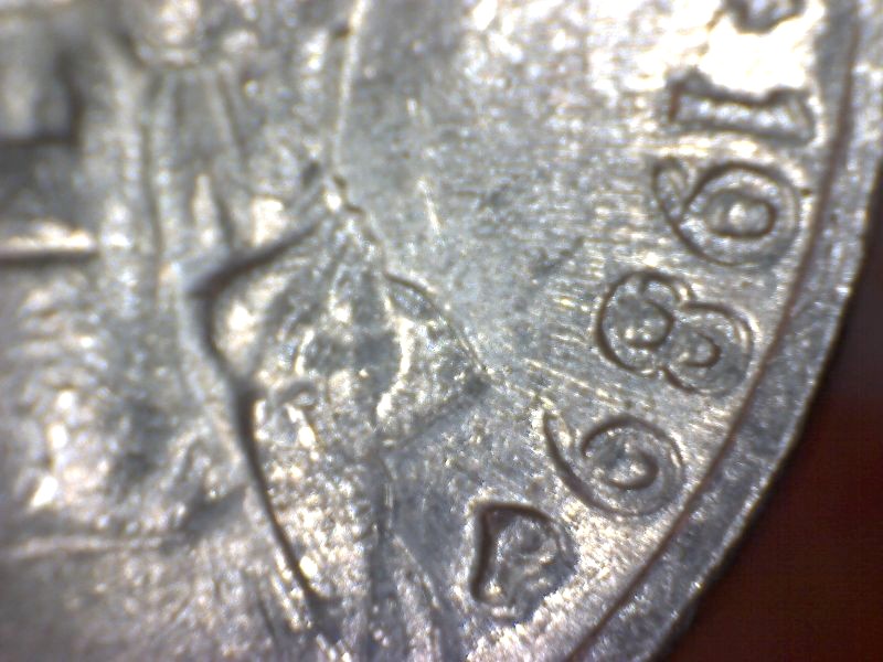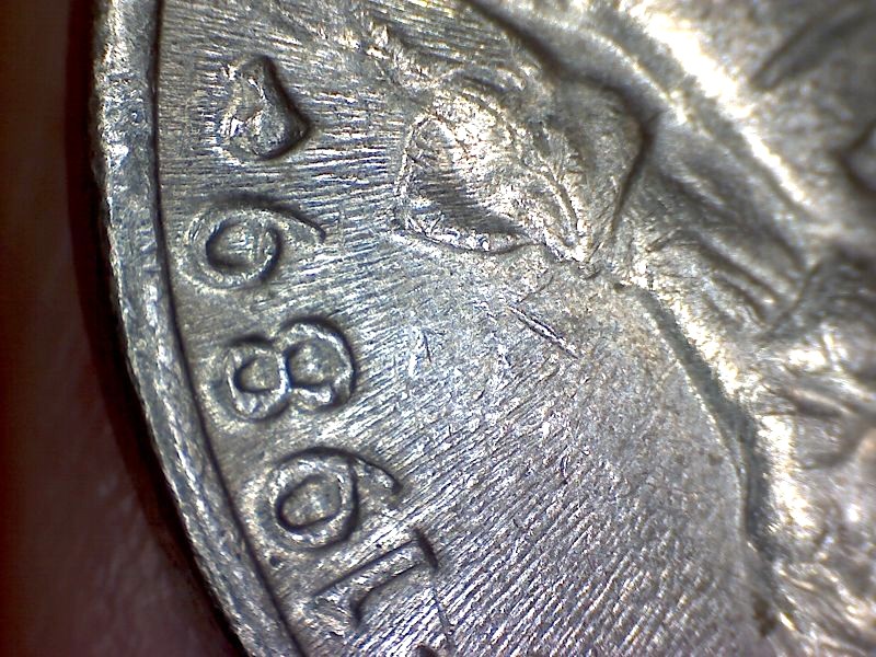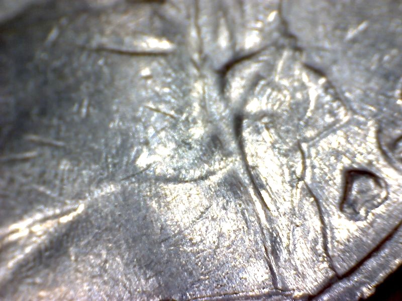 Do you see all those lines radiating outward toward the rim? That's die deterioration. The filled center of the m/m is a die break. Chris