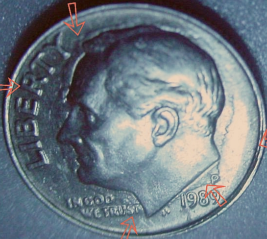 Hi, Newbie alert! I could use some help in finding out what exactly this is...found it sifting through pocket change ...other that an odd looking dime ..I've been searching but come up with..."What the heck is it?!"... At first glance I thought slag...but getting a better detailed view...it looks to me like it was punched rotated and punched again..sorry if my terminology is a bit off, you're more than welcome to educate me (lol)...There are several shots from different angles..sorry I don't have the best camera so these will have to do for now...you can see a what looks to me like a rotated (slightly) shadow..the "ST" in TRUST actually have an inverted appearance..there is also dotting on the rim to the right of the neck...and very slight doubling of LIBERTY lettering.. Ok..I think that's everything...now for the link.. http://s141.photobucket.com/albums/r43/jerryandjulie/DIME/ Thanks in advance for any help you can give... Peace, 52