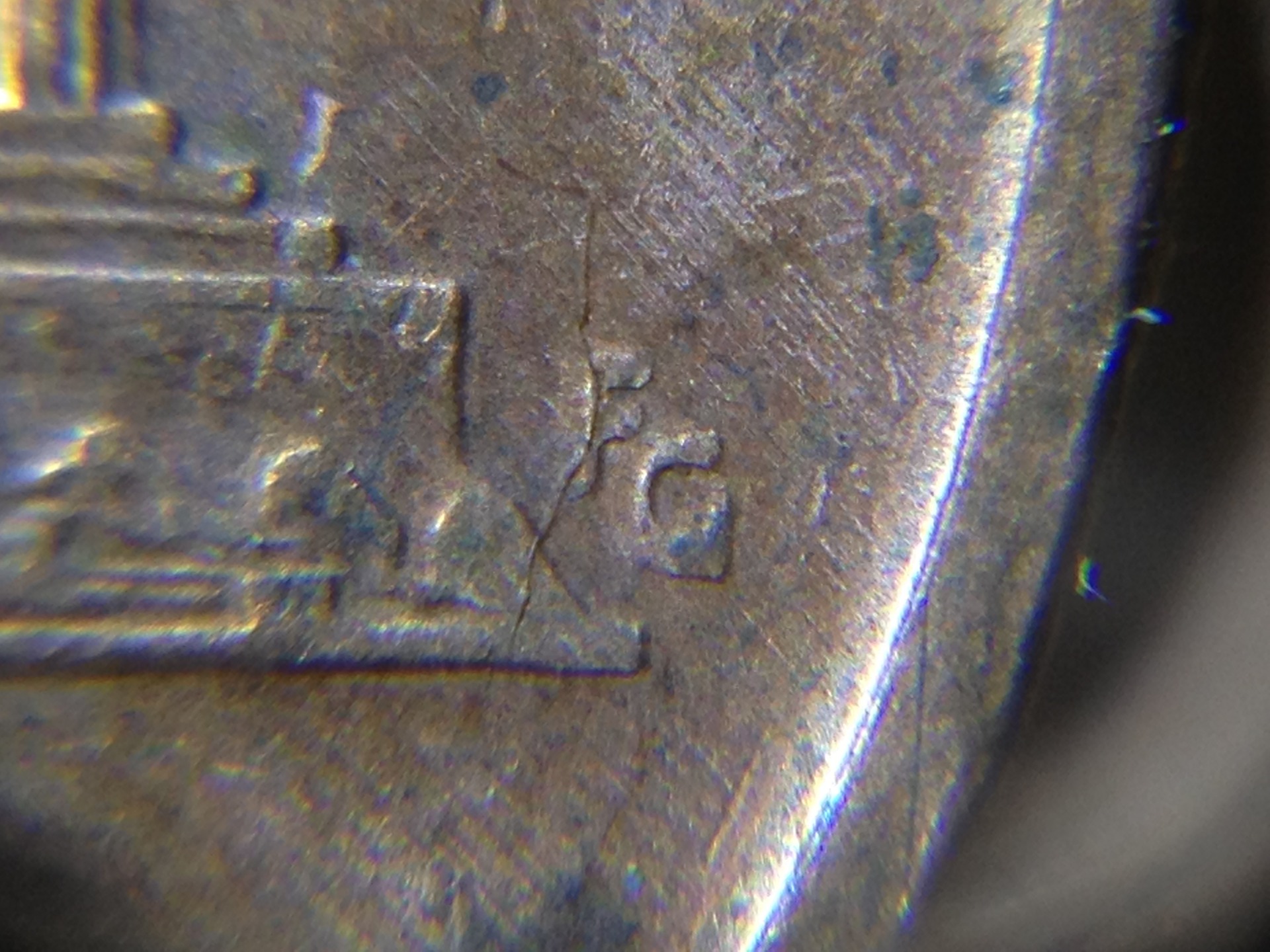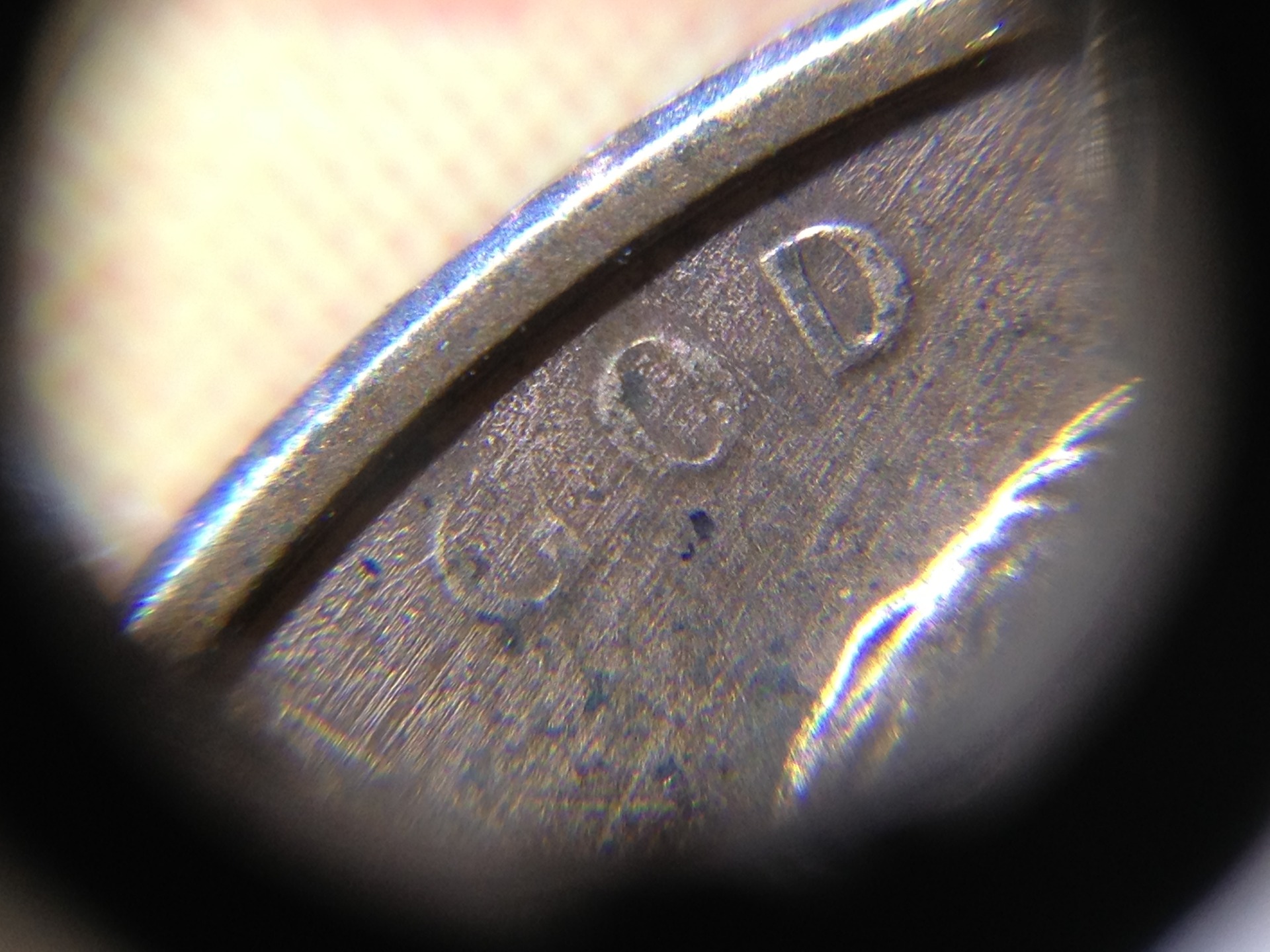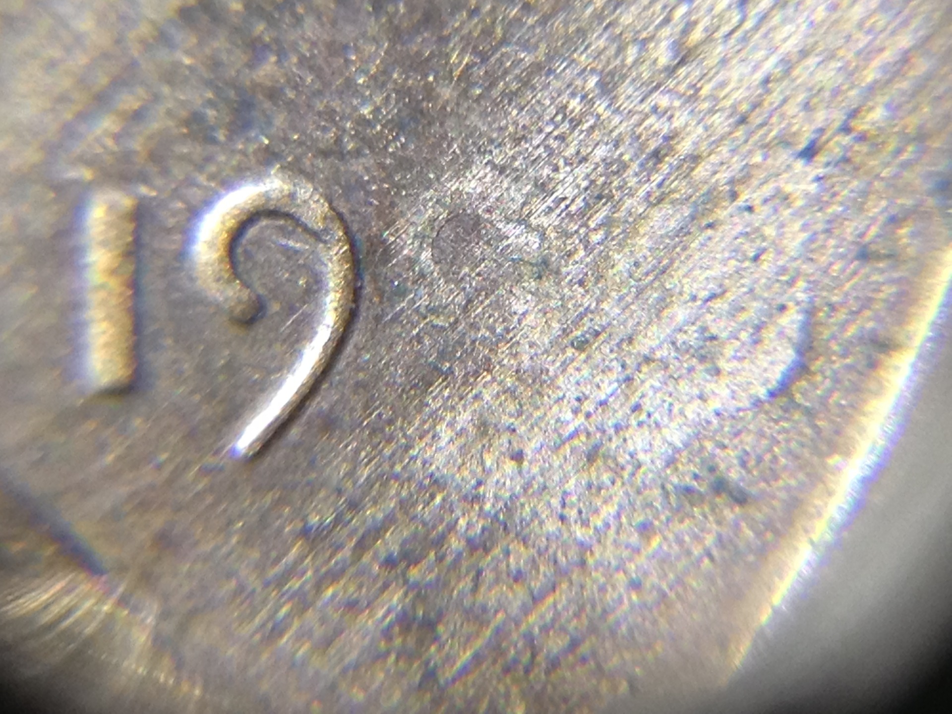 Struck through grease on the weak/missing design, and the ear took a small hit (not a doubled die).