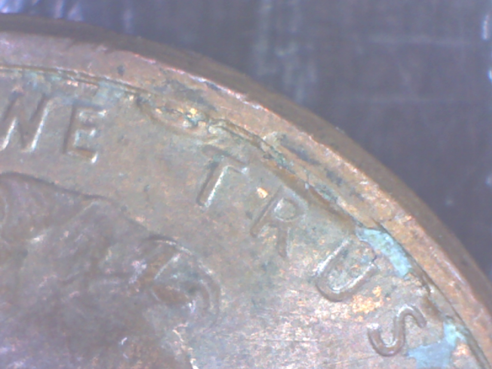 struck thru grease on the last digit an zinc rot around the rim, common to see the plating split around the rim on these zincolns...