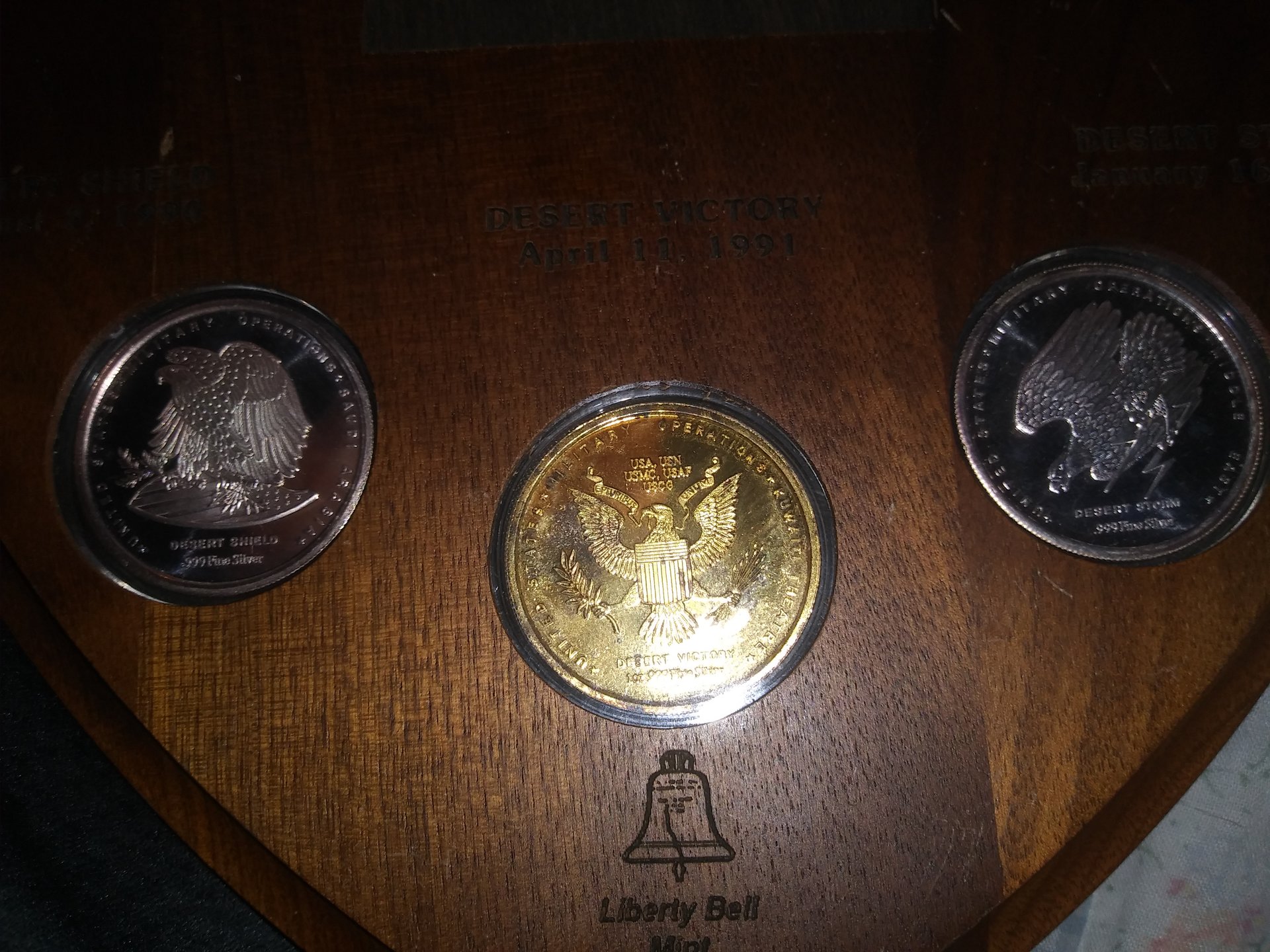 Got a pretty good score today at the yard sale paid a buck for this plaque when I took it out of the golf bag that I paid 2 bucks for all the coins said 1 oz 999 pure silver on them can't find any on the internet so I'm curious to see if there's any numismatic value