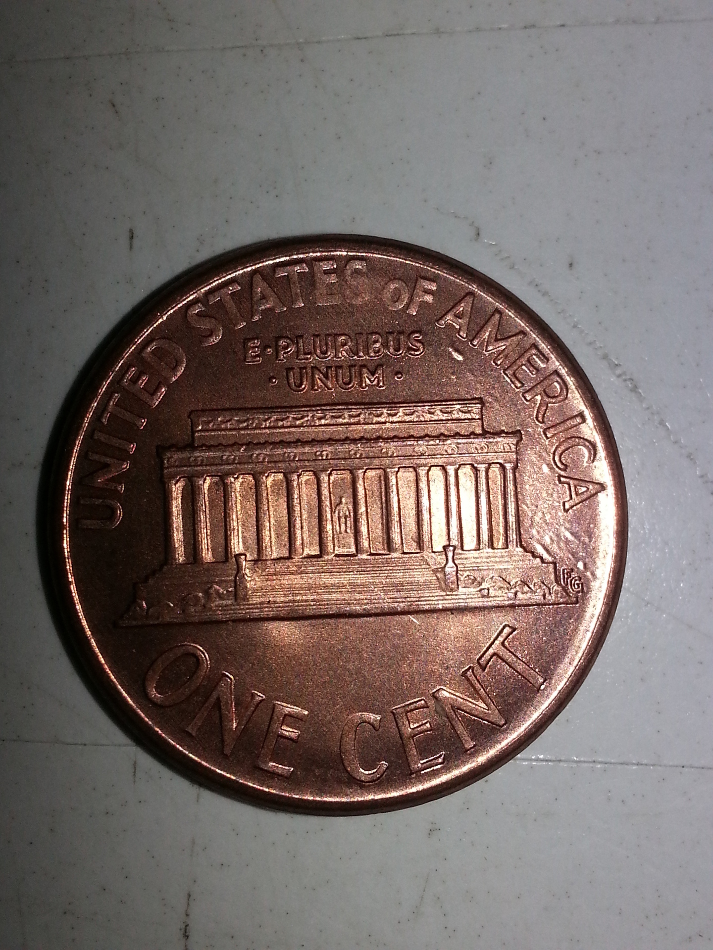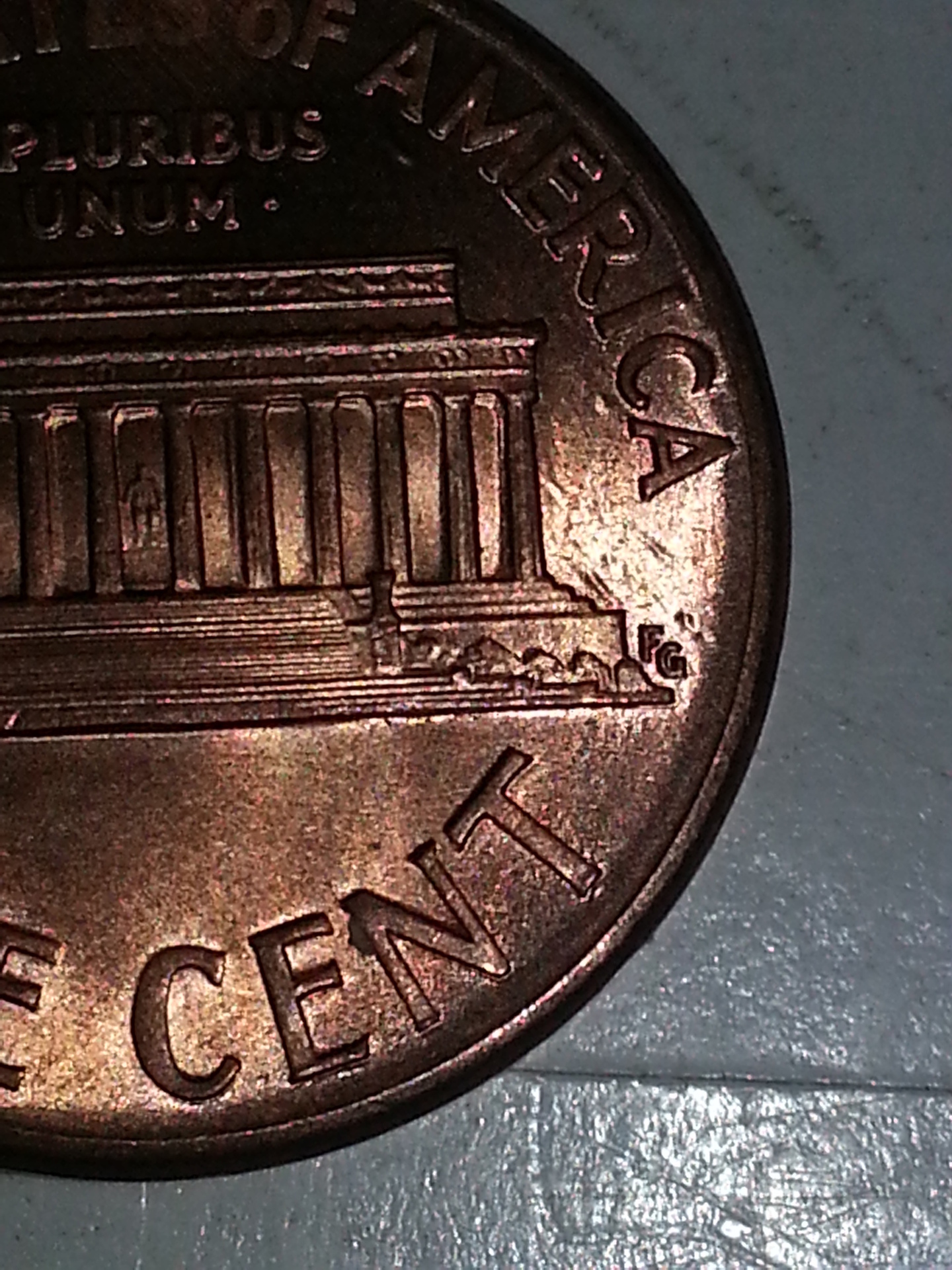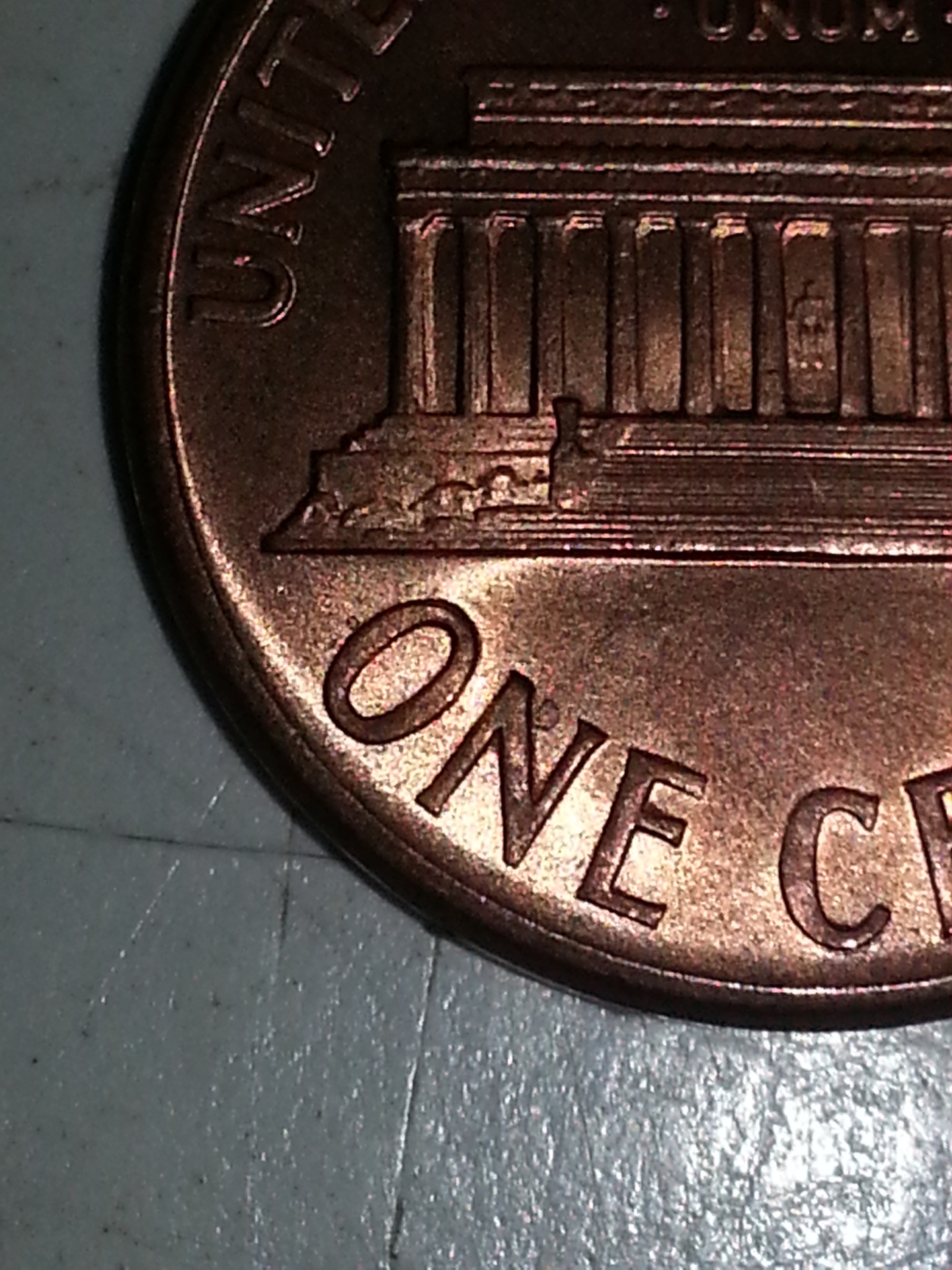 The lines between the memorial and "America" are plating issues. It happens a lot with the zincoln cents.