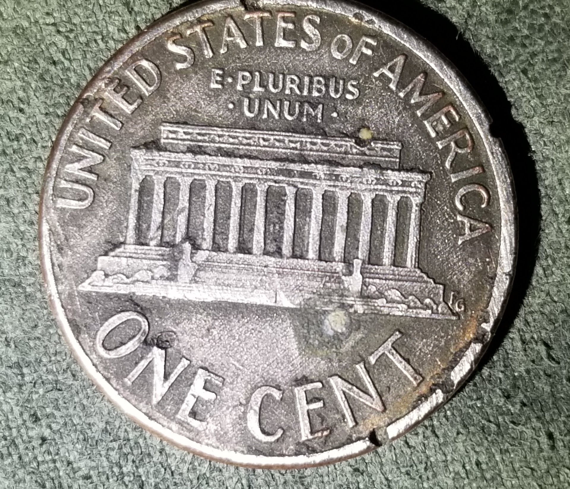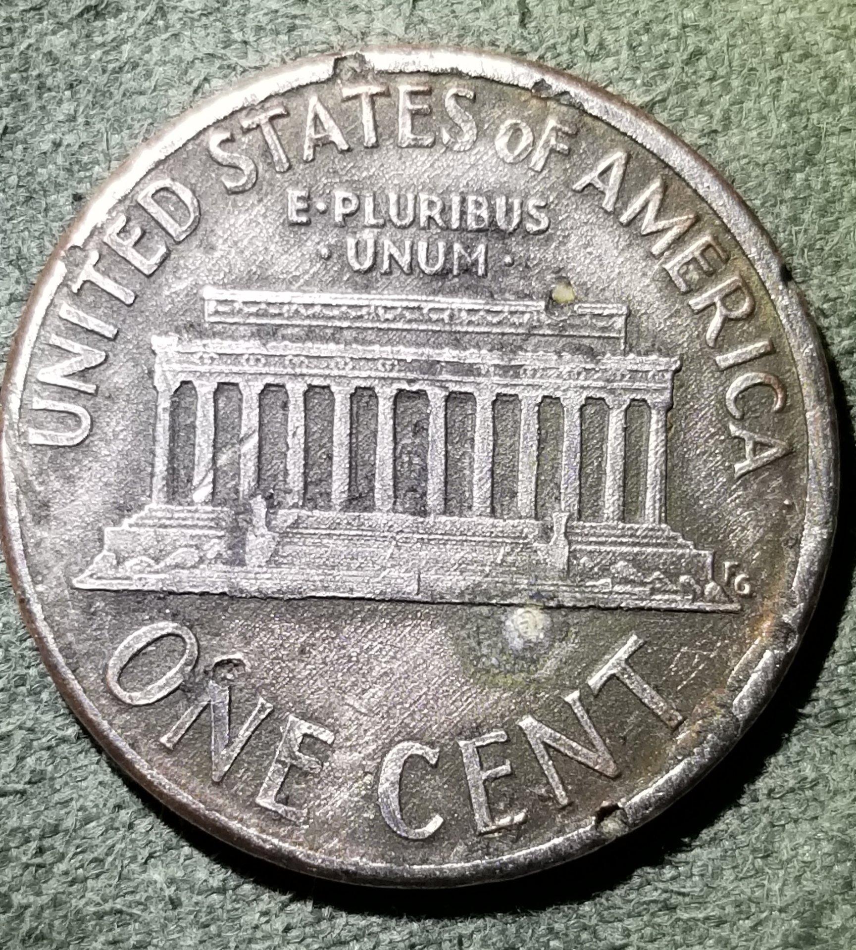 Was this caused by an acid bath? Copper plating can be seen on top part of letters and rim. And the bubbling areas on reverse.
