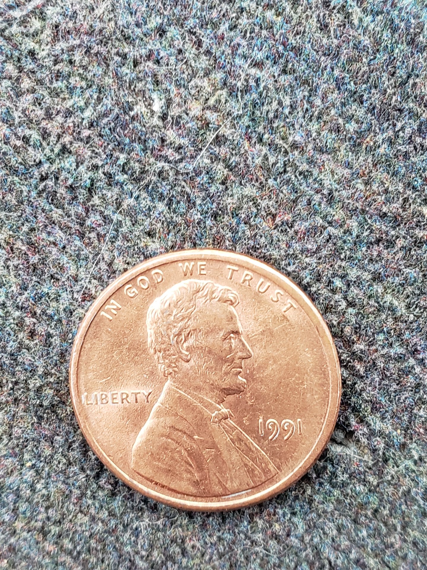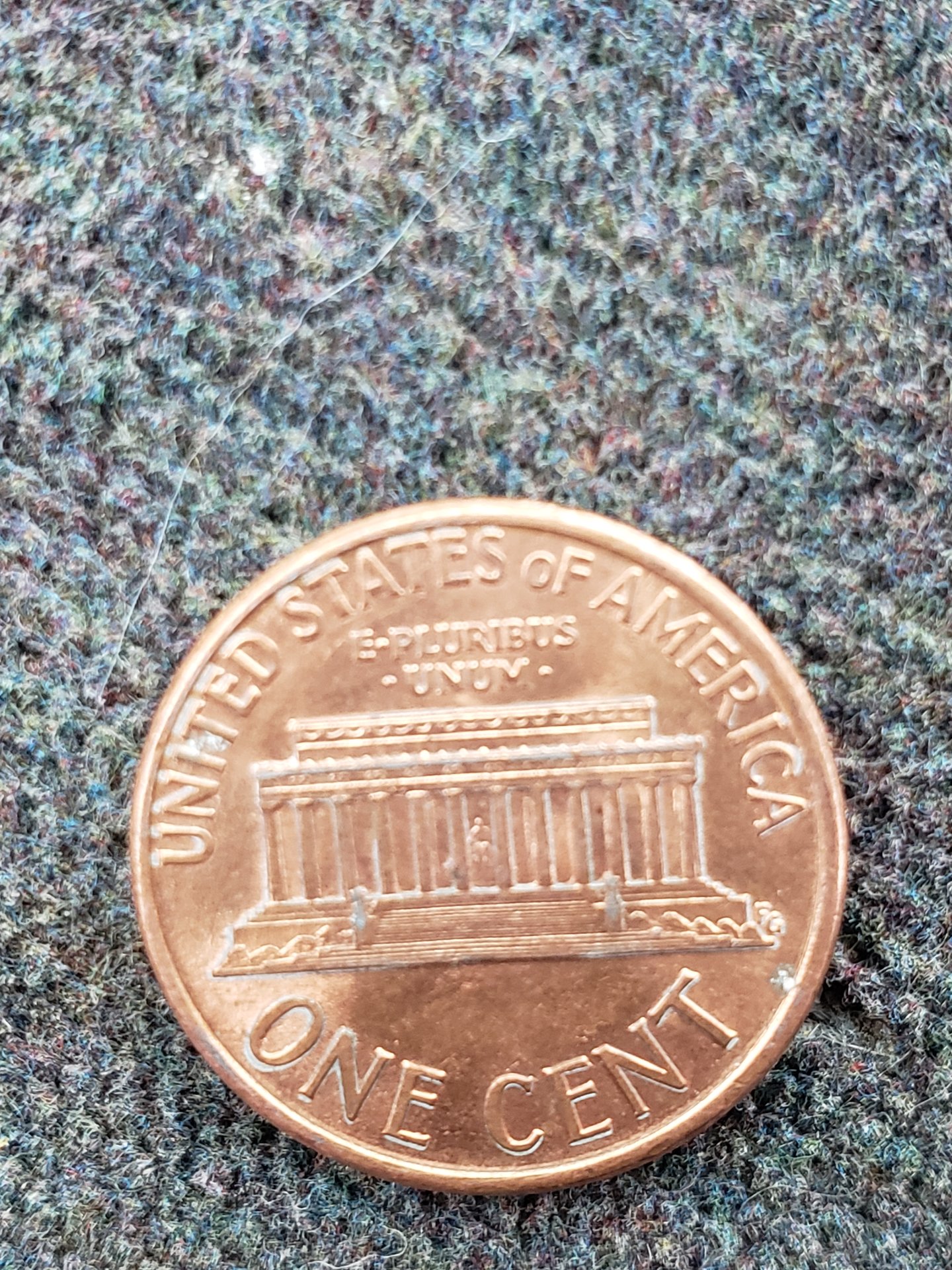 1 cent. This is due to the super thin electrostatic copper plating on the planchet. When it is struck the plating gets stretched too much, usually on the outer side of devices, and the copper stretches too much and shears. Thus leaving a small area where you can see the Zinc core underneath. In your example this is occurring in many areas.