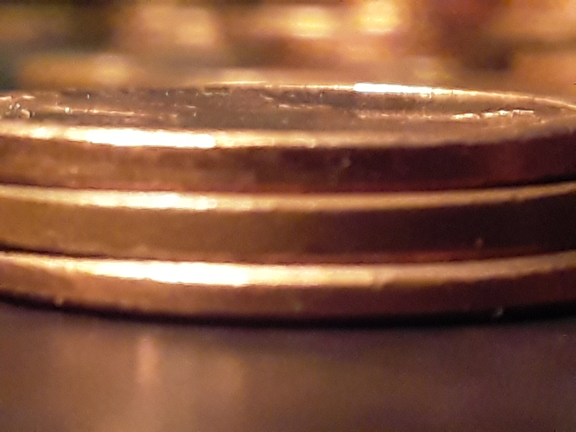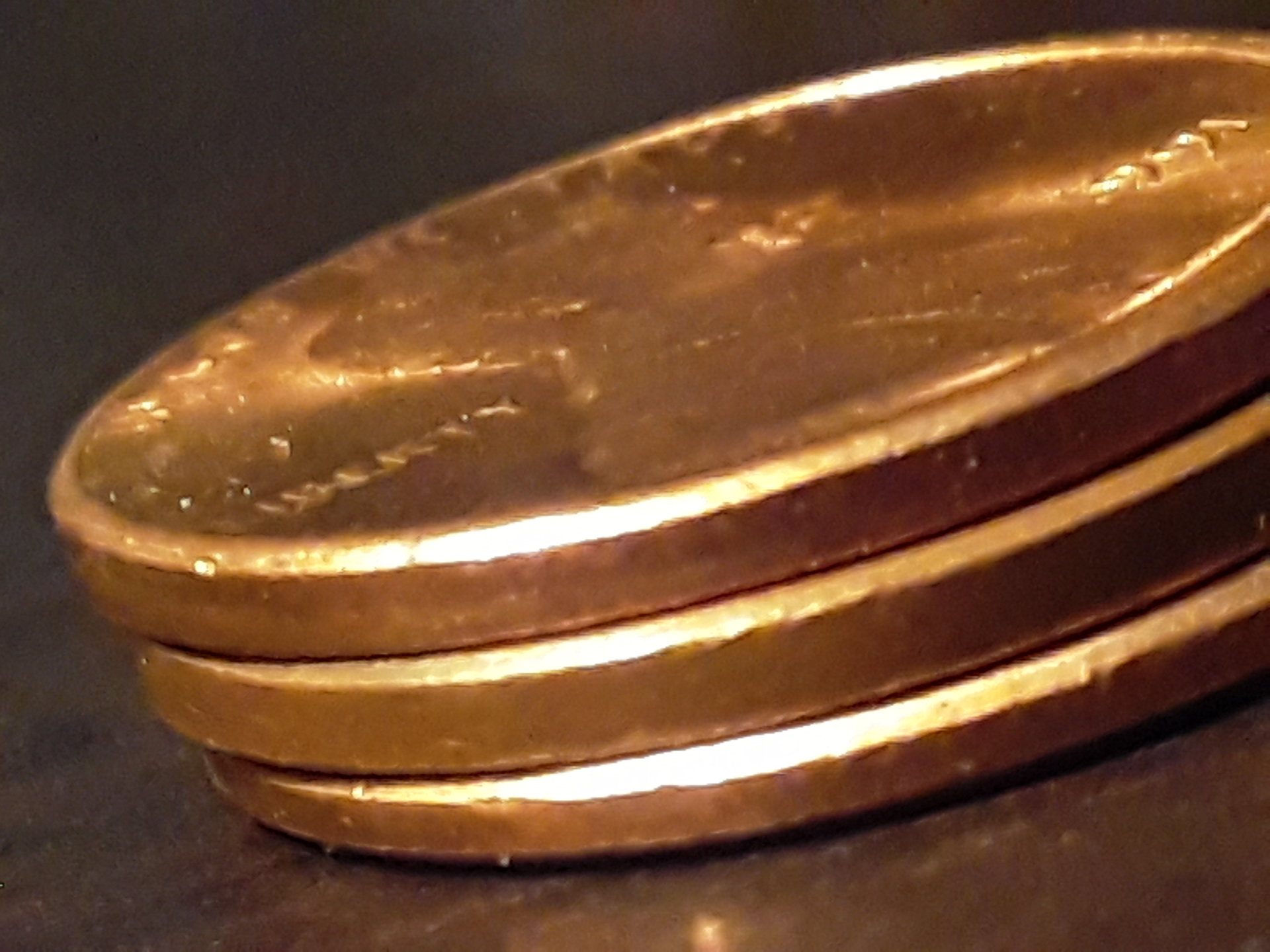 I don't see anything unusual. One of the cents has more pronounced bevels from the rim to the edge but that isn't unusual. Look through a bunch of cents and you will find a lot of them. You can also find them on nickels, dimes, and quarters as well.