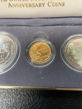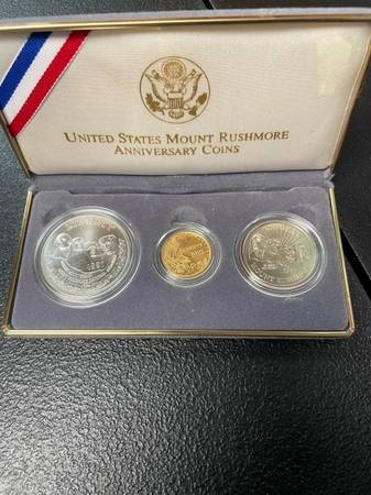 I’m looking for a value estimate on a 1991 U.S. Mint Mount Rushmore 3-coin commemorative set ($5 gold, $1 silver dollar, and clad half). The coins are still in their capsules and the original display case and appear mint/like new with no visible wear. No COA or outer packaging. Not graded, and I’m not sure if they’re proof or uncirculated.