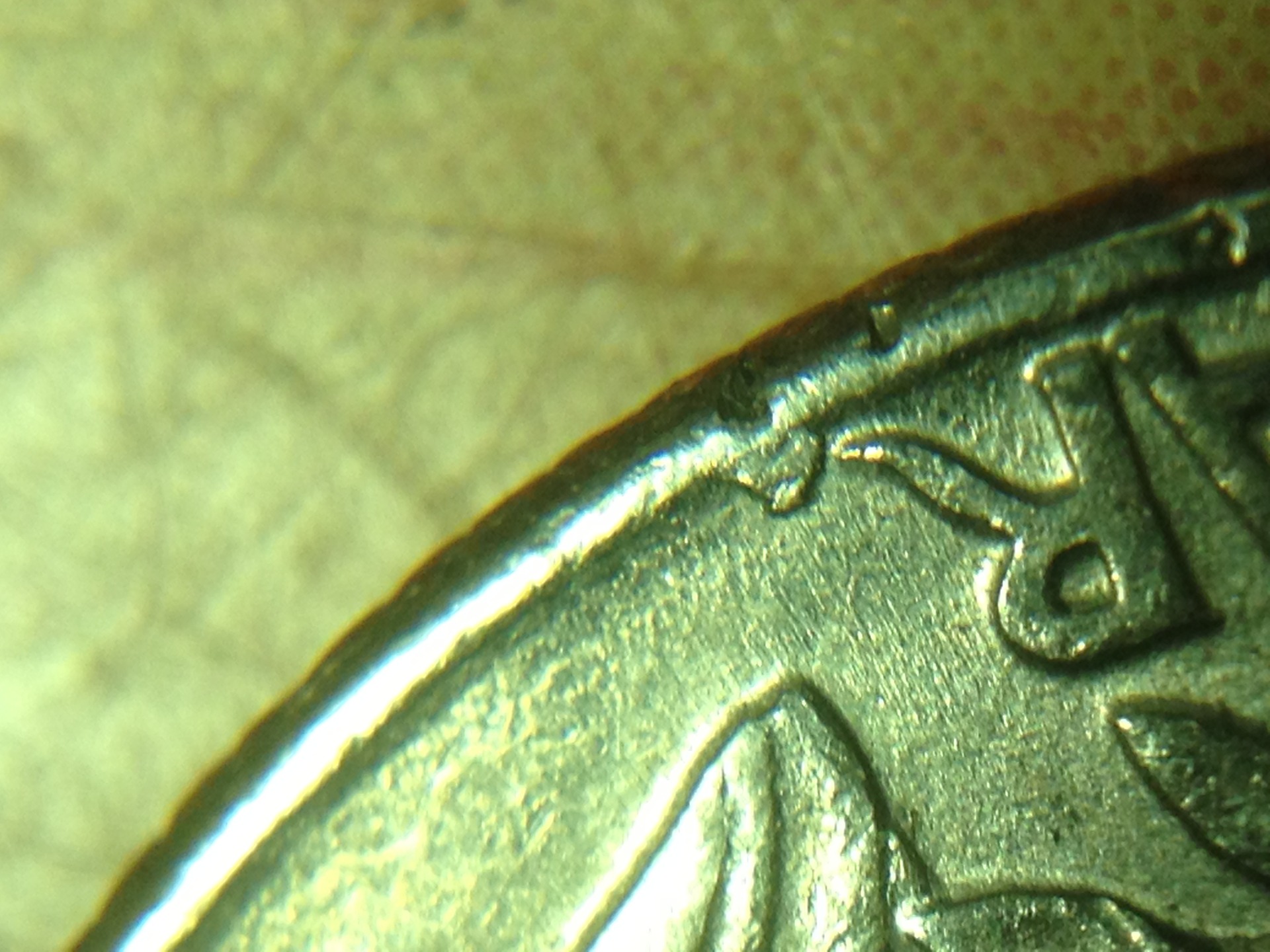 I do not see a CUD as much as I see a simple die chip since the rin is fully formed. I also to not see any evidence of "die" doubling.