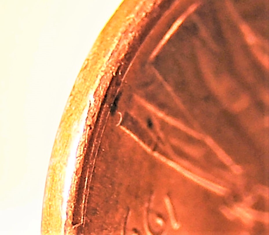 That looks nice now. Better close up. So strange how that peel out is so low inside the rim. What ever grabbed that peel out almost hit the field too. Look at the rim further down from the start of the peel, see the small rim dings and what I would describe as diagonal lines maybe strike up flow marks? The coin metal of the planchet has to basically flow like thik hot liquid for a fraction of a second. All kinds of things happen during that fraction of a second and I think this coin got a crumbly edge that stuck out just enough for the rolling machine to catch and chew on. Just my theory no training here just 45 years of eyes on Lincolns. What I meant about flow also I do belive that the plating can flow and build up also on the rim just ever so slightly. I believe that’s why there is no zinc uncovered by the peel