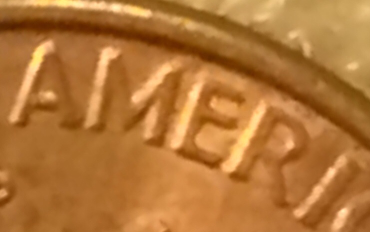 But the M seems to be evenly spaced between the A and E. On the close AM the M appears to be definitely shifted toward the A and not evenly spaced. I pay much attention to the gap between the A and the M because that can vary somewhat due to wear or polishing of the die. But if you just look at the AME as a group on the close AM the M will definitely look too far to the left.