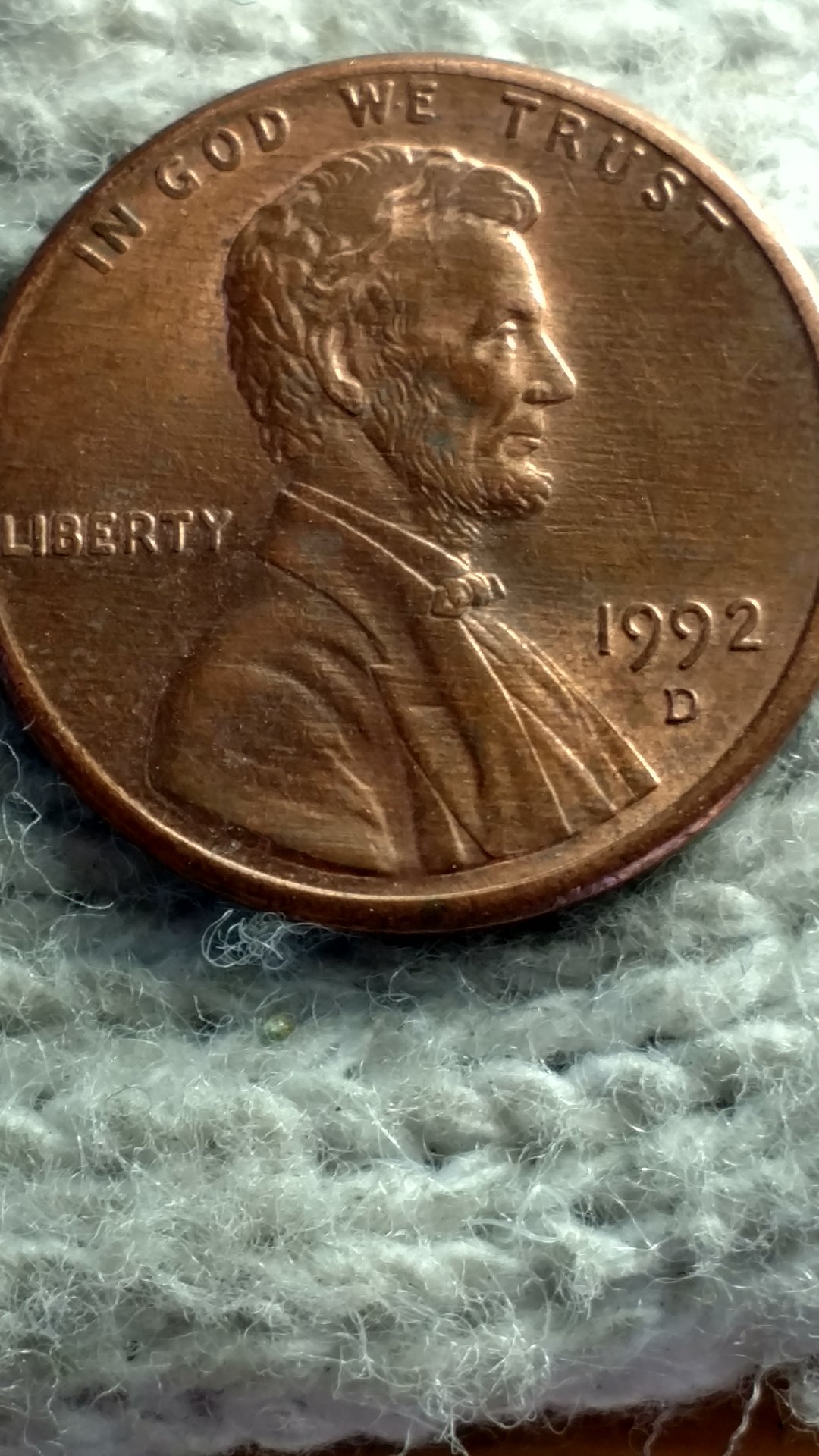The E in UNITED is what I believe to be doubled ! The top horizontal of the E doubled and rounded with separation lines, CW rotation Opinions needed! Thanks