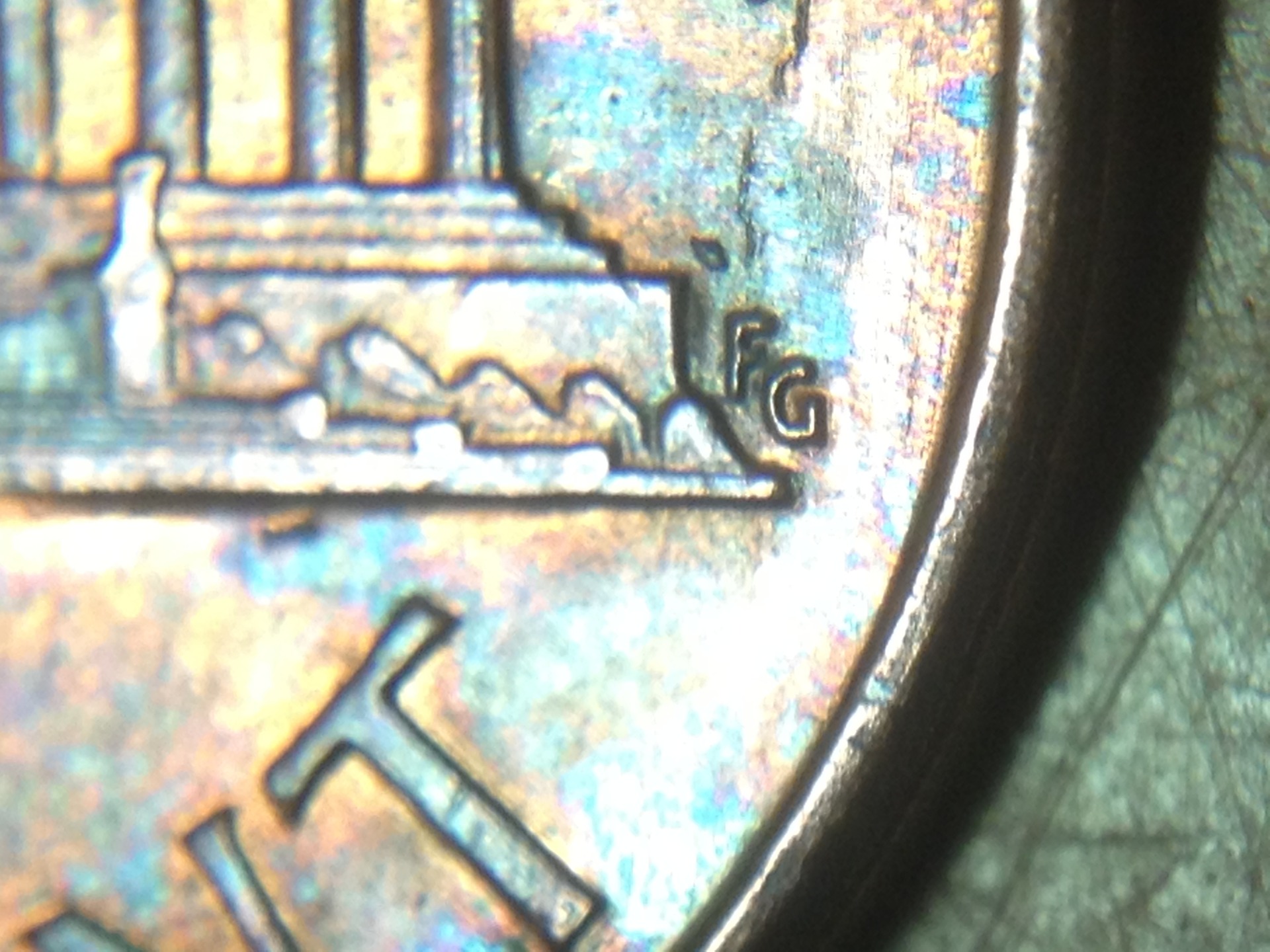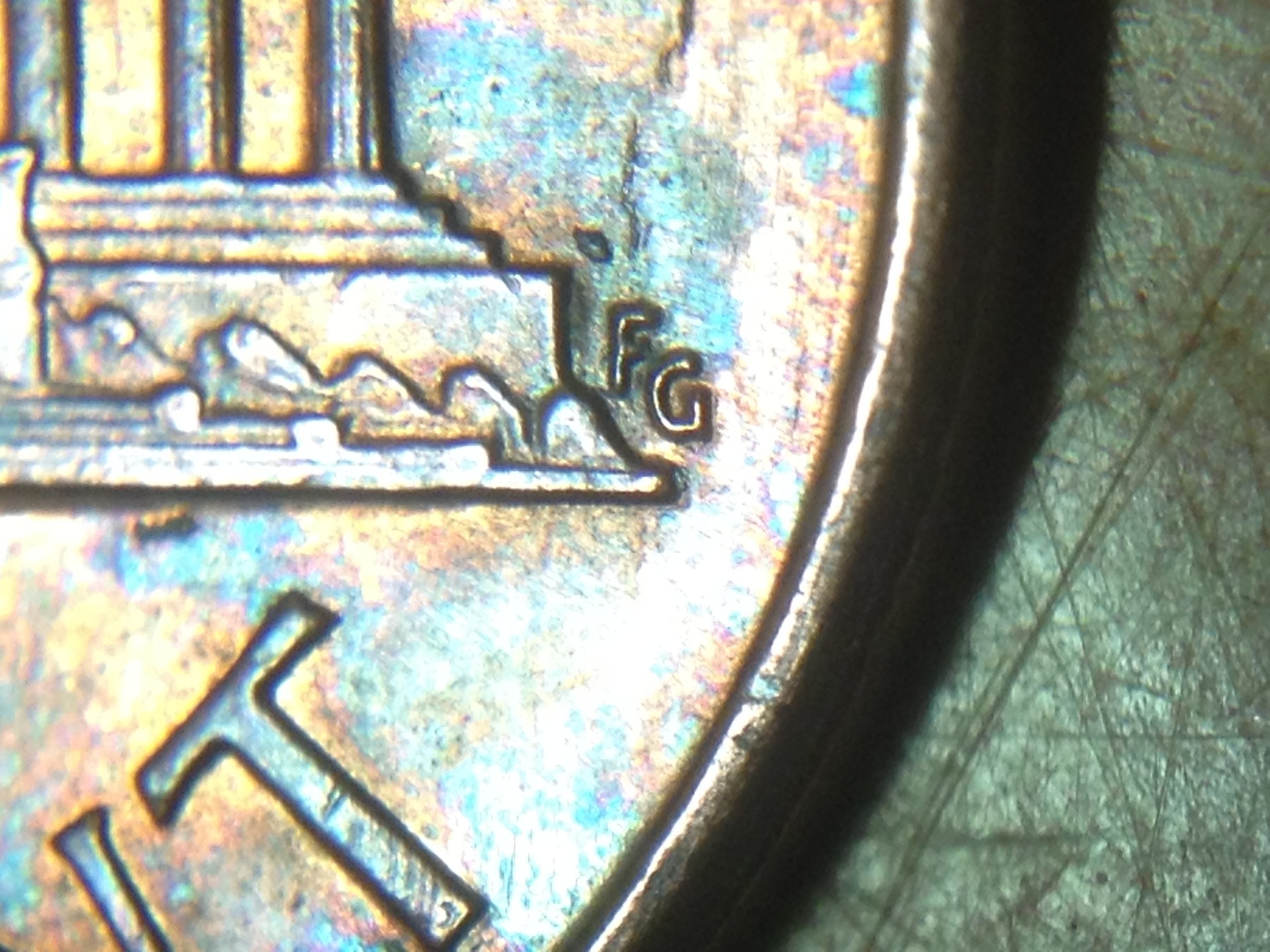 Tommy, I consider myself well-aware of the different reverse design varieties. What do you have to say about the length of the top of the G? It obviously does not extend as far as what is seen in an RDV-005, and more closely resembles the normal RDV-006. Also, with the RDV-005 being retired after 1989, I would find it, let's say, unlikely that it survived for 4 more years after it was retired to strike more coins.