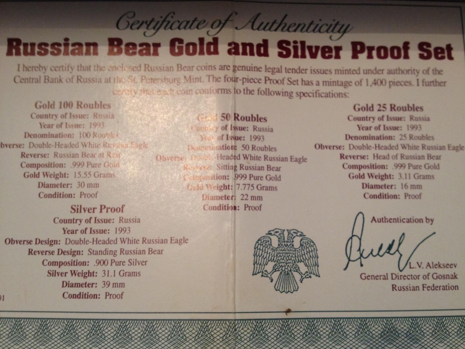 Just found out my grandmother bought her grandchildren coin sets. I received the 1993 Russian Bear Gold and Silver Proof Set.