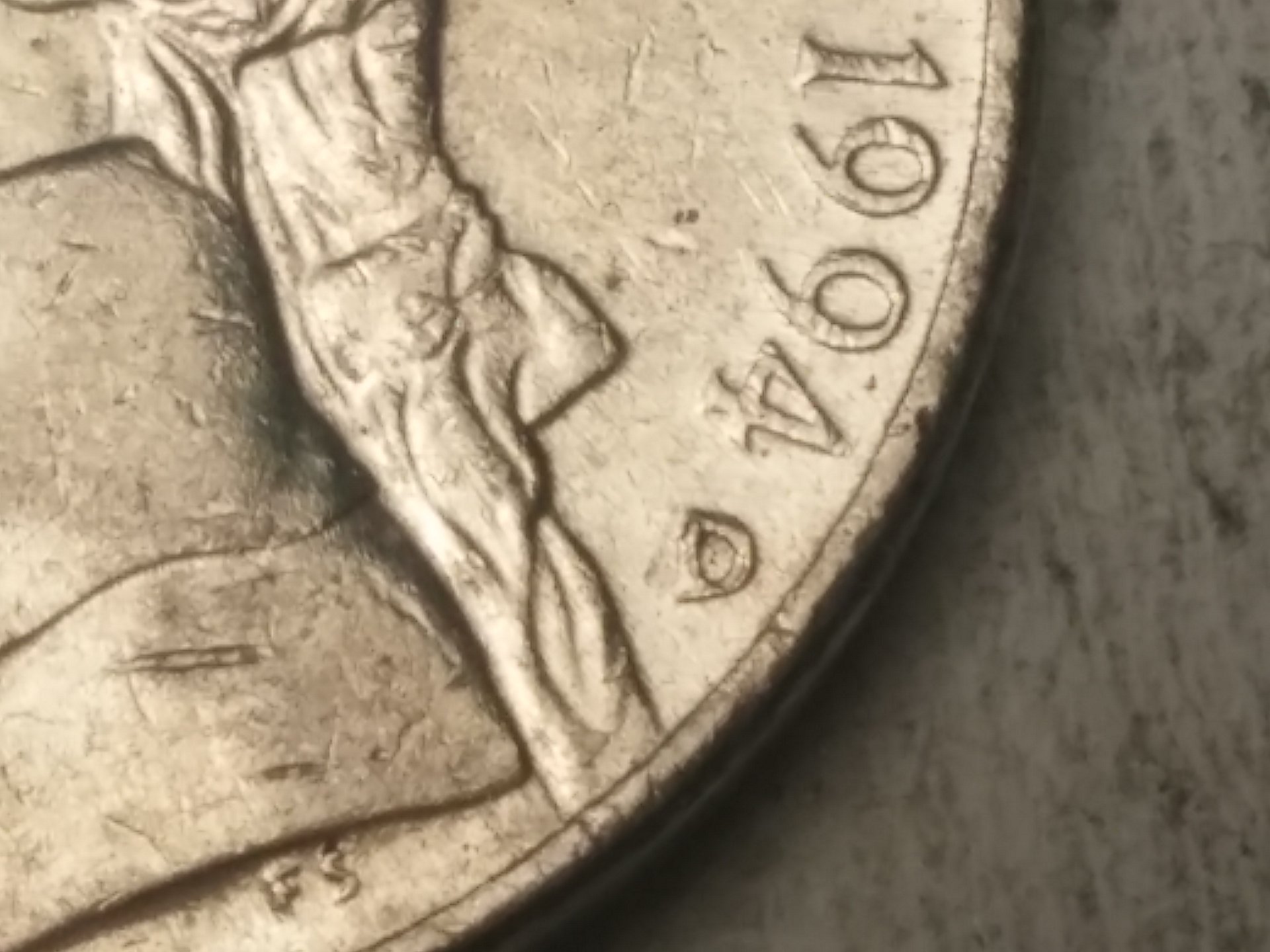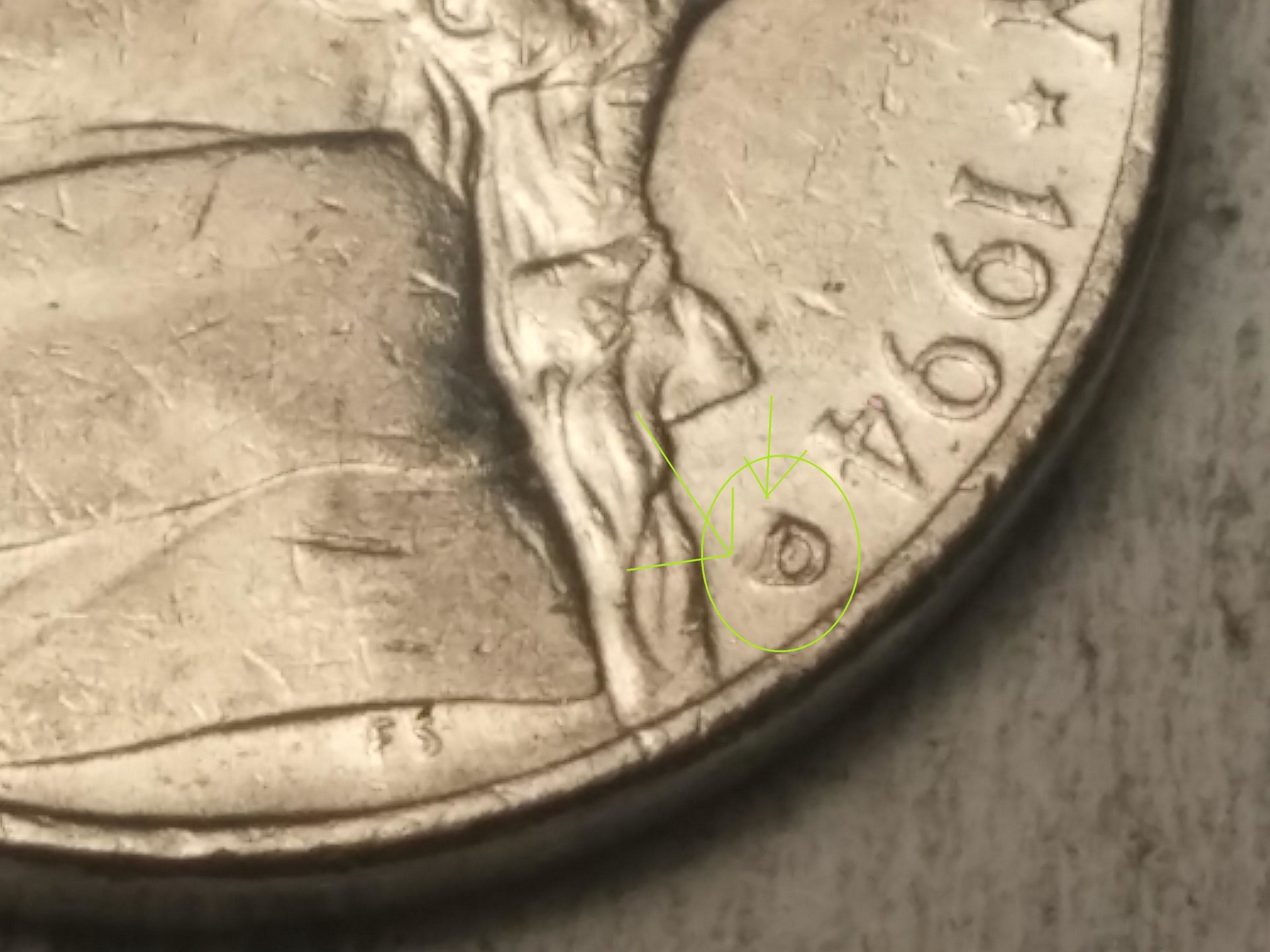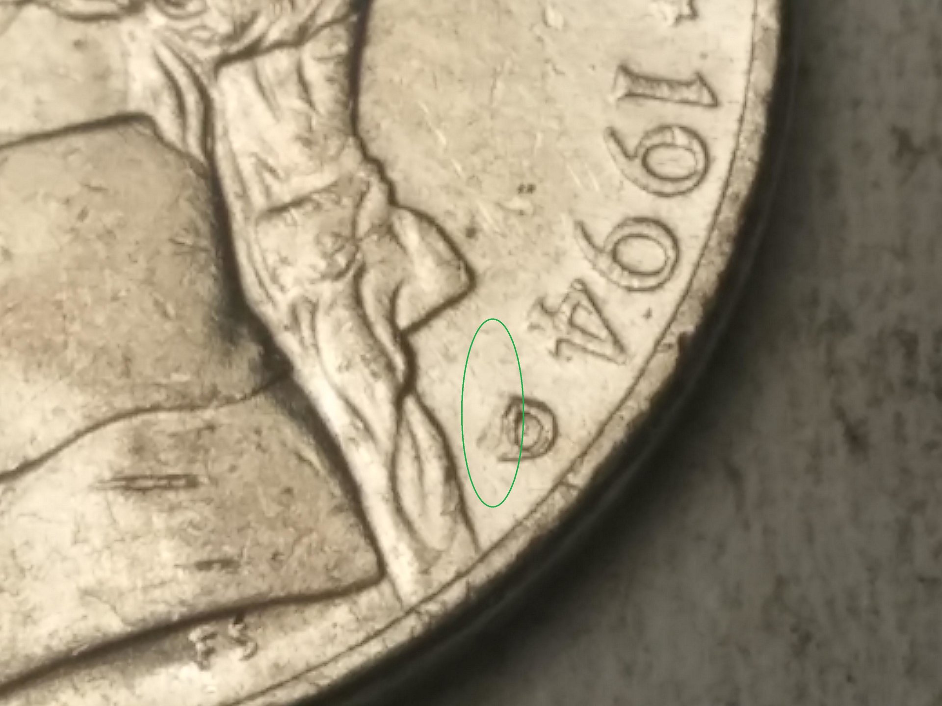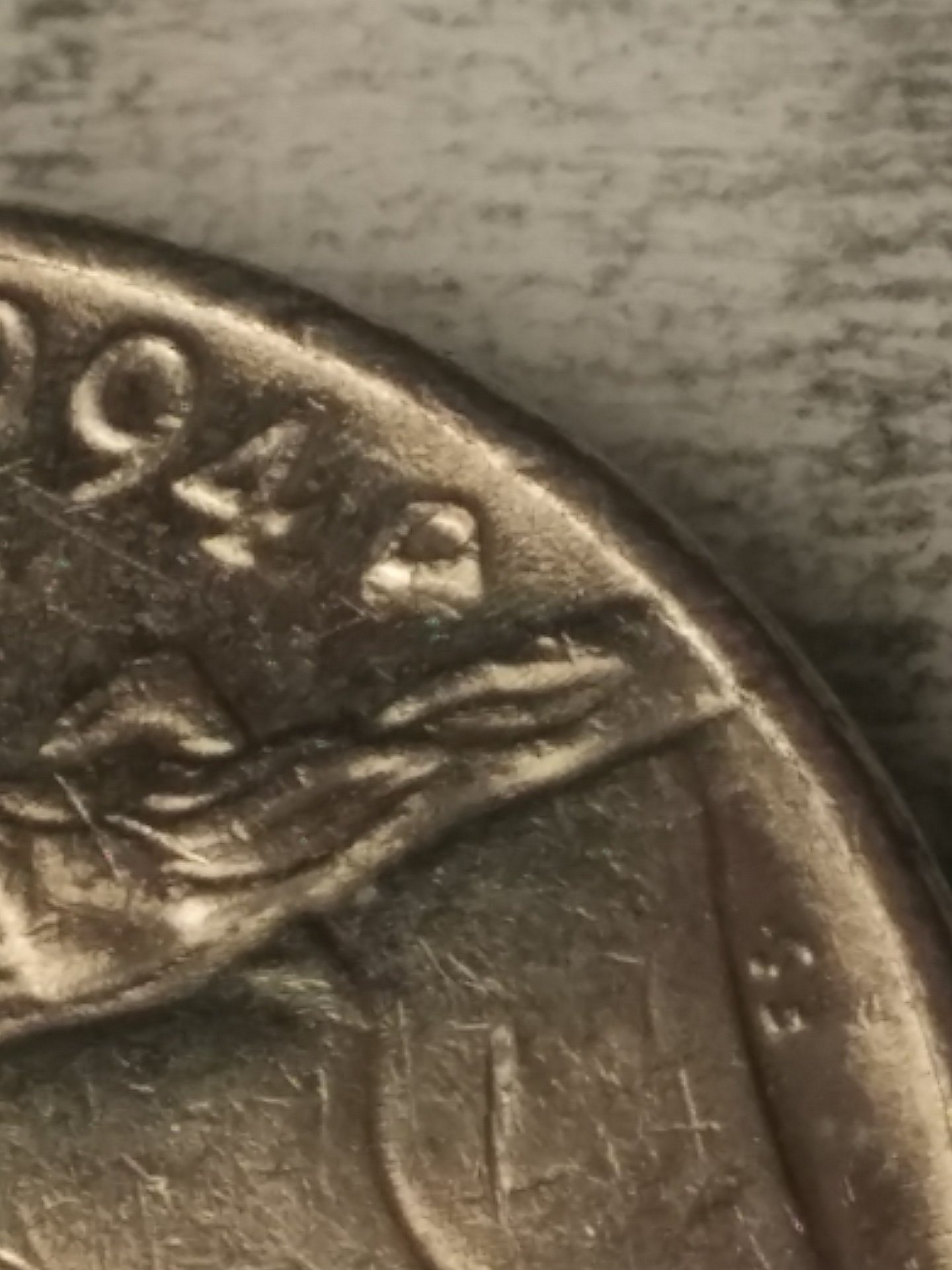 Now I see what you are talking about. As Tommy and Markus pointed out, it's just damaged. Could have been from a coin wrapping machine or a well placed hit. After 1989 the mint stopped hand-punching the mint marks into the dies, so there are no RPMs after 1989.