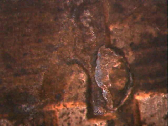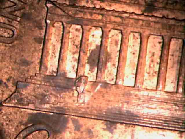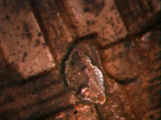 It could either be a gouge that moved some metal or some solder added to the coin. Hard to tell, but nothing special in the end.