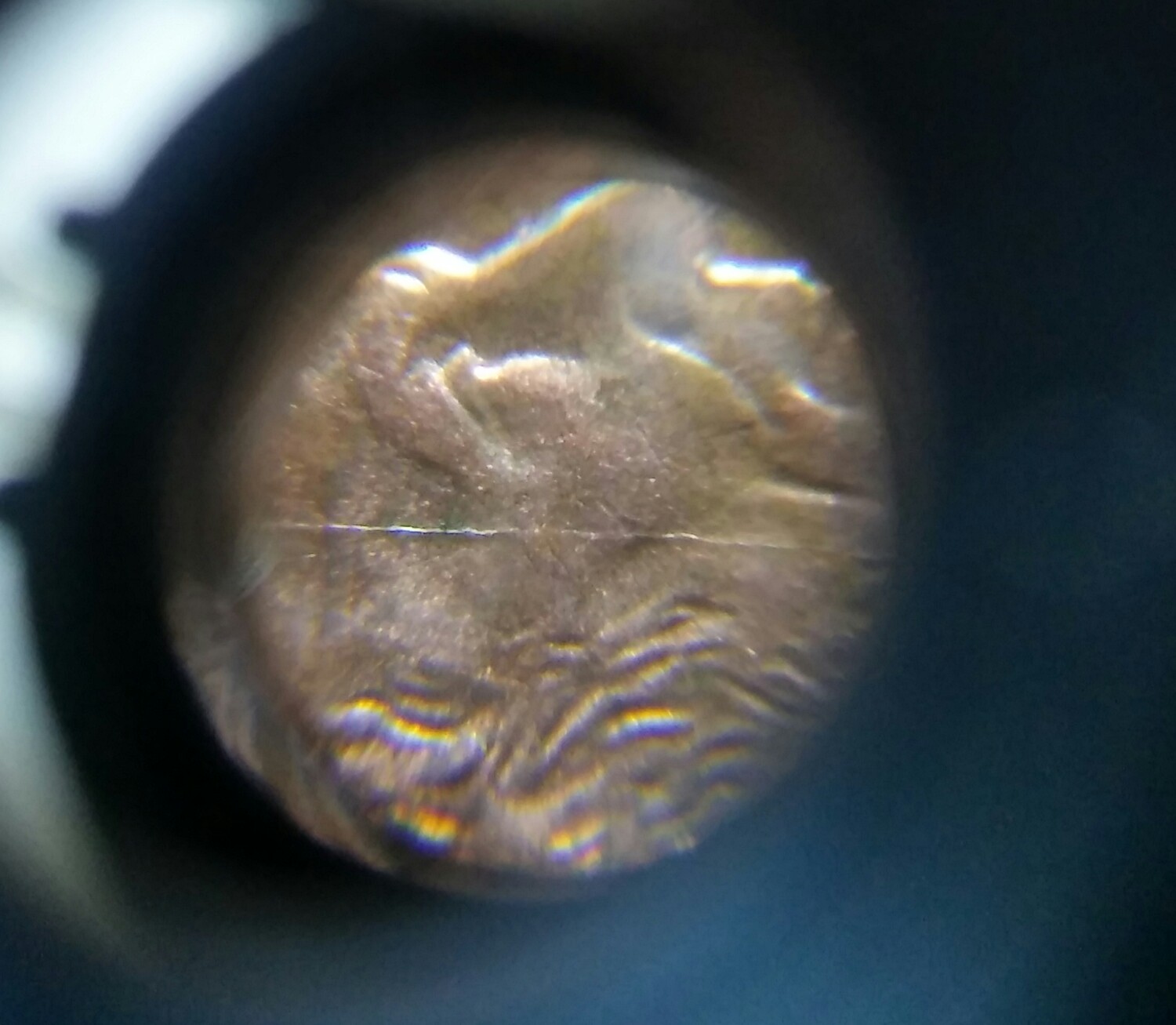 I know, I see nothing there except "glare". Rotate the coin in the light. Now what about the vertical white line? Just curious.