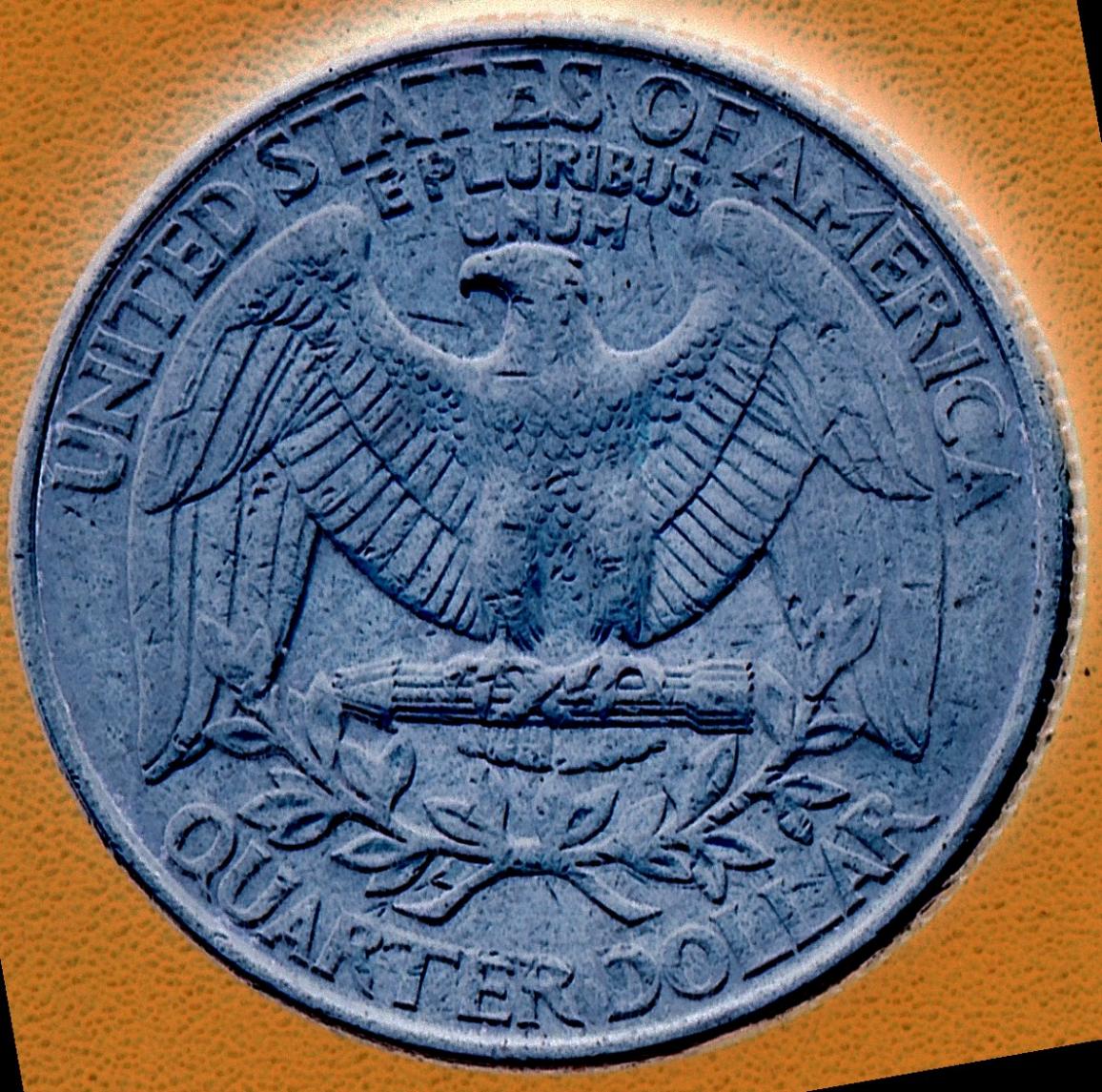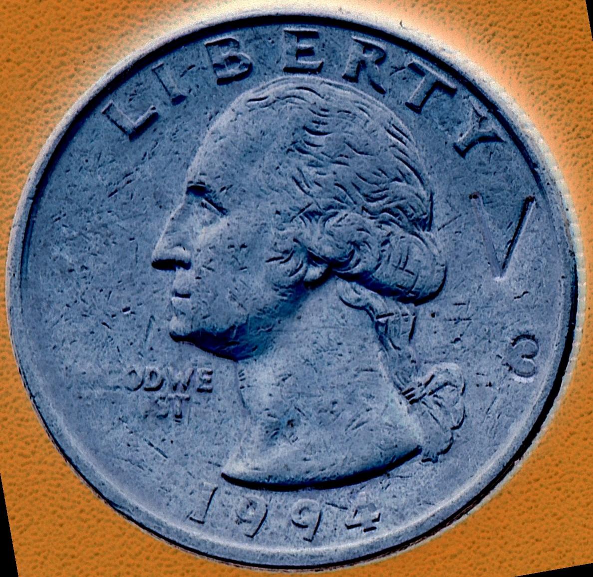 I received this awhile back at the Toll Facility I work at here in Austin, TX. This anomaly does not appear to be from wear. The coin appears to have been struck through grease on the motto "In God We Trust" as well as the mint mark. (My understanding is that all quarters are supposed to have MMs since 1980). I have tried to find evidence of an obliterated mint mart or even a strong hint of one in the proximity of where it normally would be. If I summon my Pareidolia skills I can almost make out a mint mark. The reeding is quite good for this circulated coin. I have no idea who or why someone put the V3 (PMD) on the obverse to the right of Washington's bust. The scans were obtained using an HP7410 @ 600% magnification (both normal and negative.)