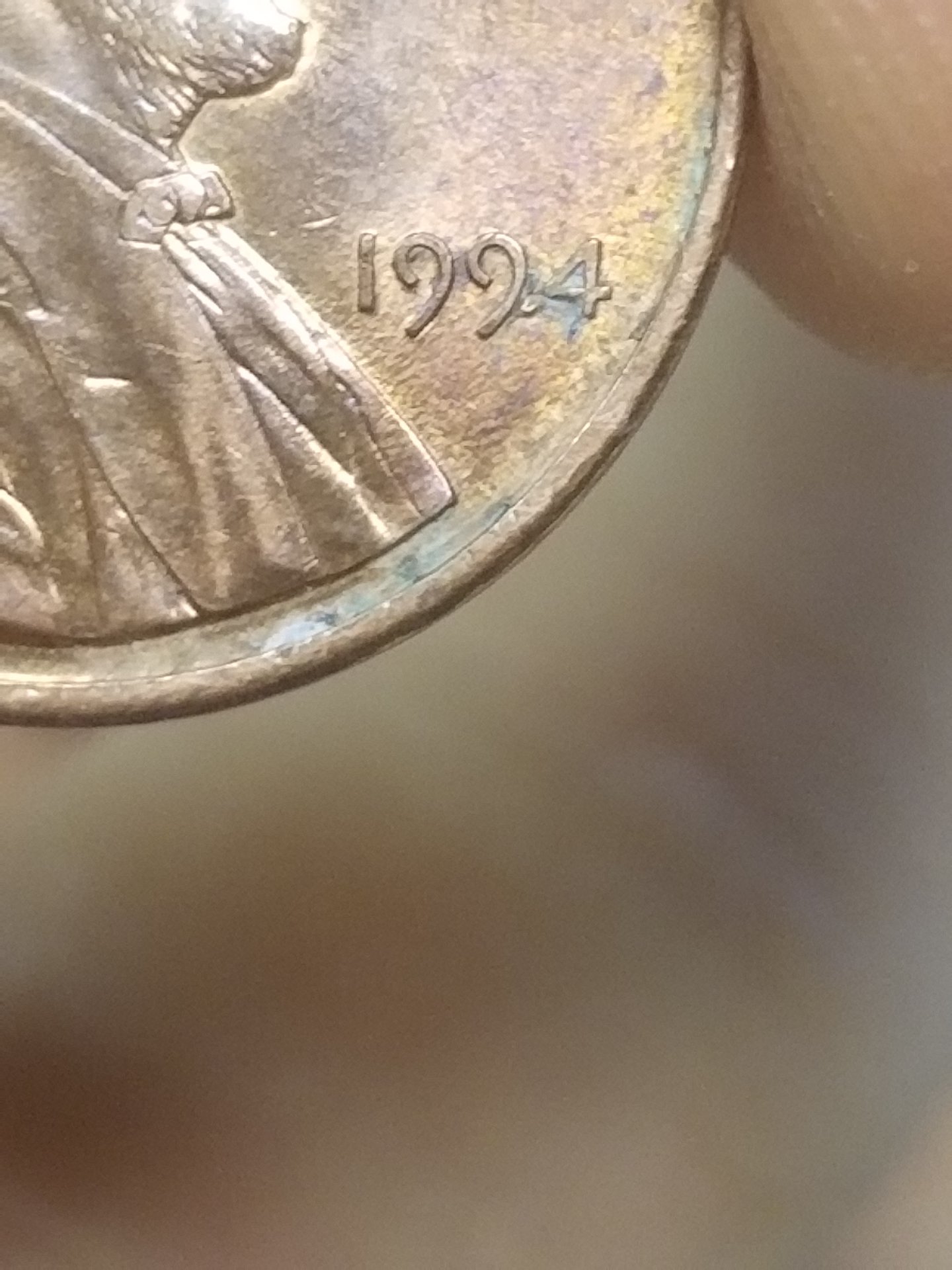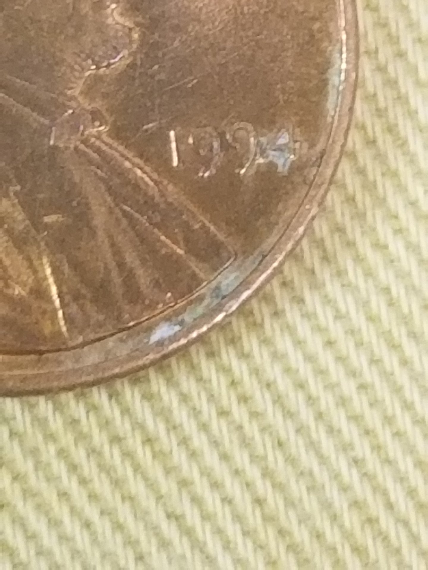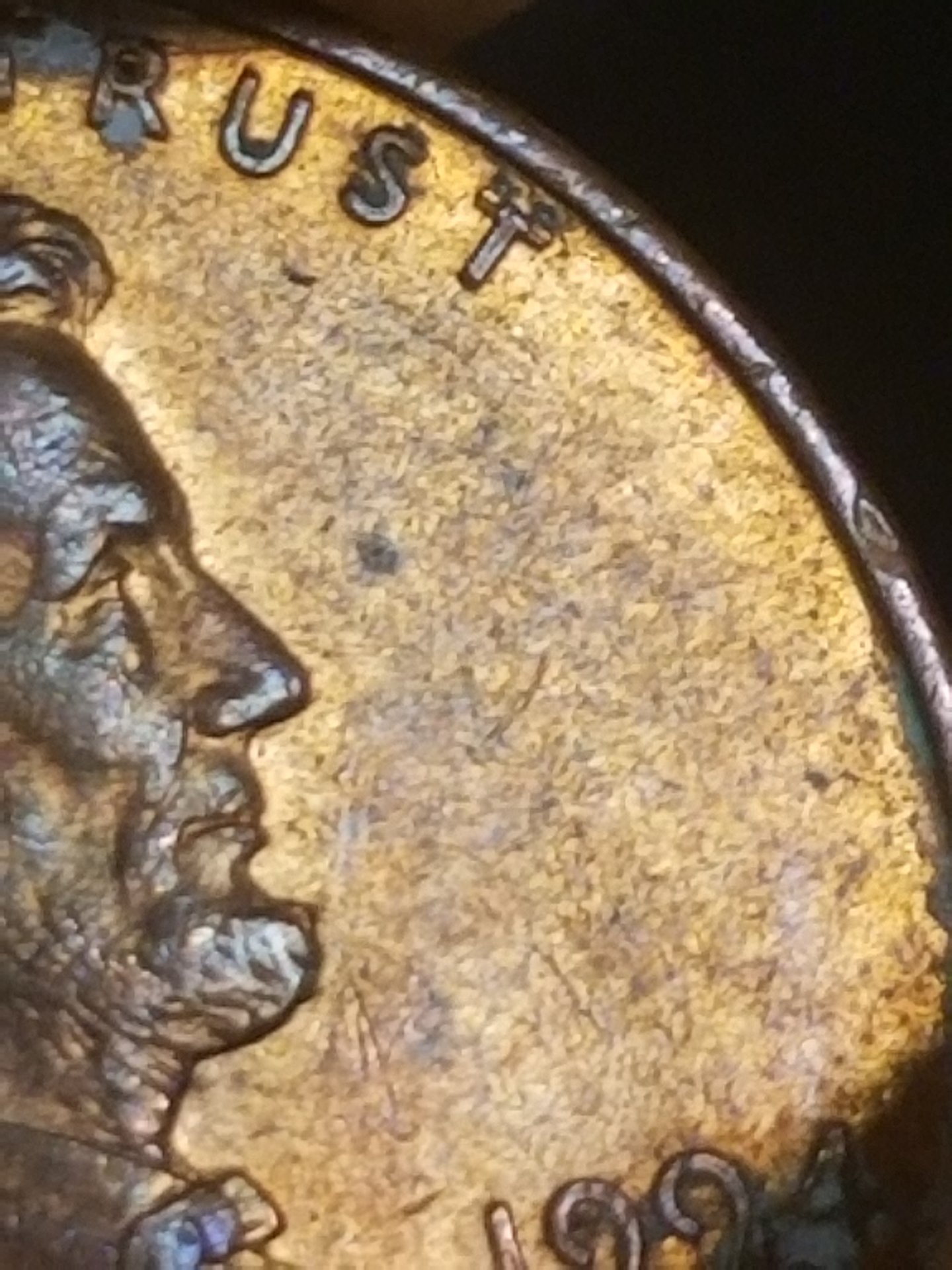 Hmm...any insight on what is going on with this 94? Looks like another T above the last T in Trust. Looks like another 4,turned clockwise behind the date. Pretty sure that's a blister beside the 9...idk