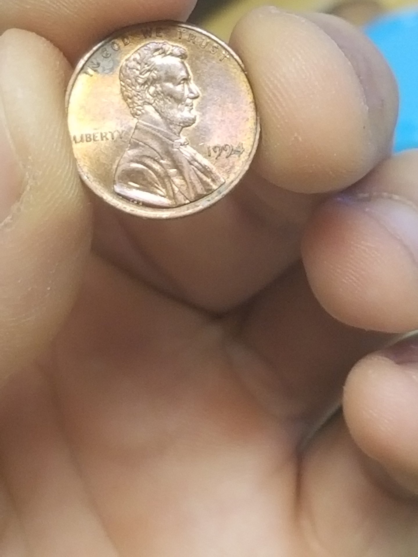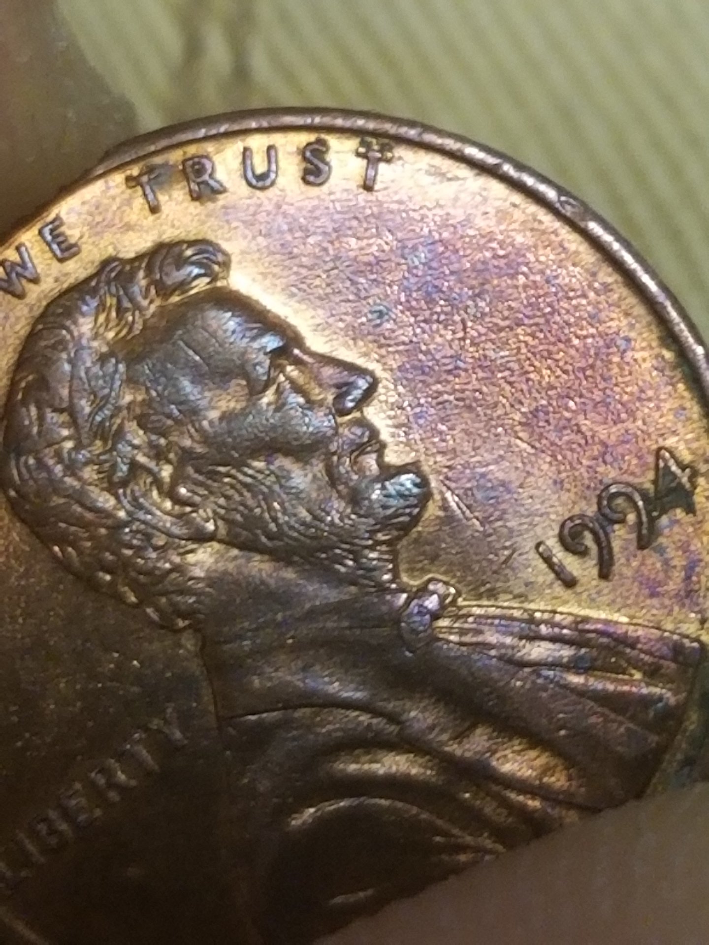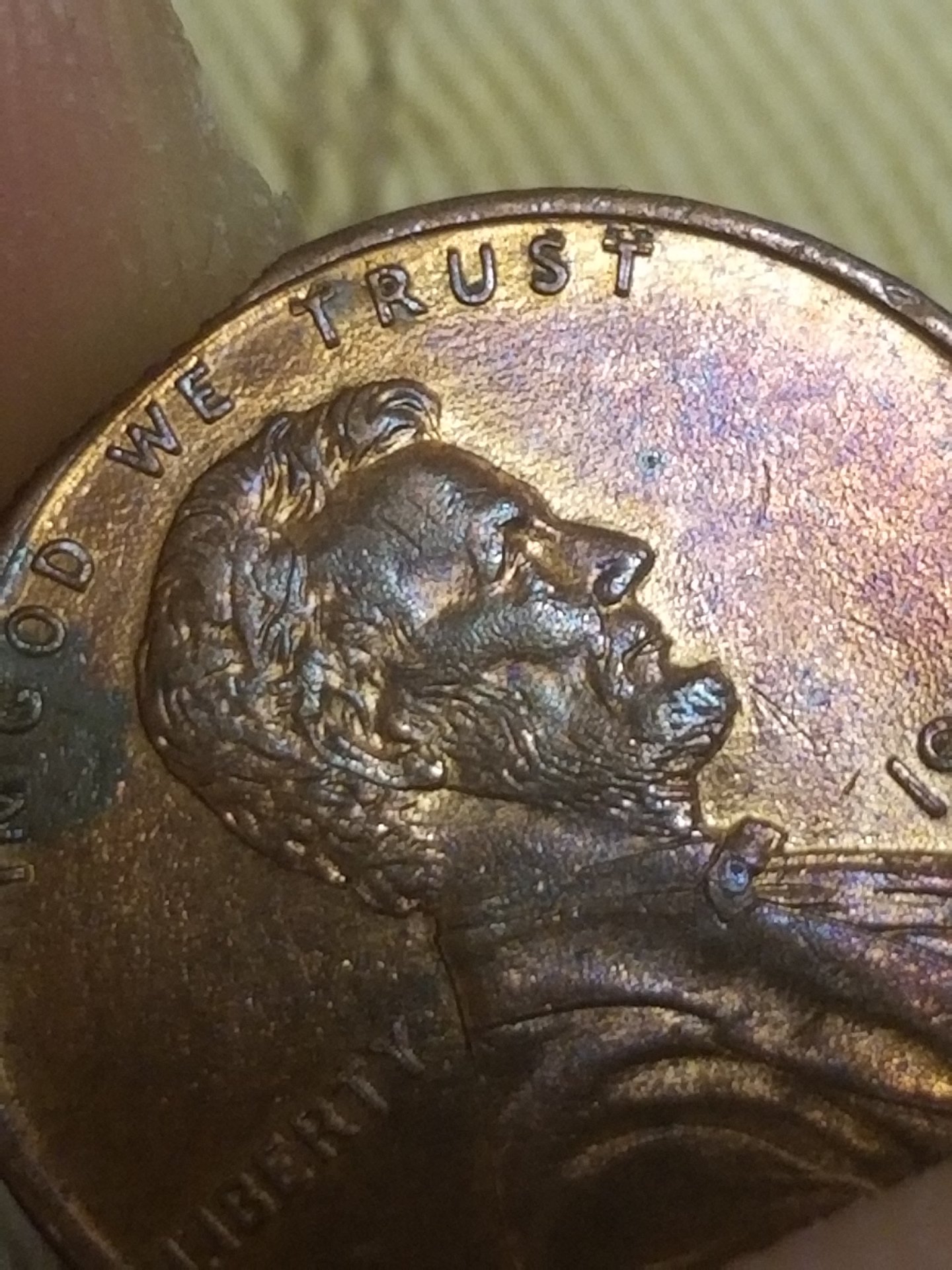 Hmm...any insight on what is going on with this 94? Looks like another T above the last T in Trust. Looks like another 4,turned clockwise behind the date. Pretty sure that's a blister beside the 9...idk