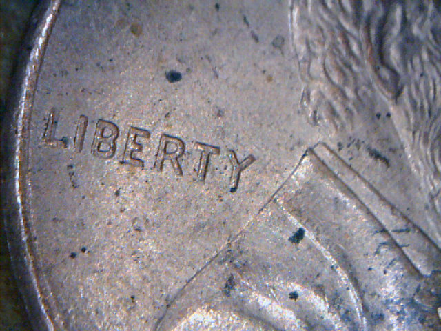 Looks like a long pointed end spike over the long part of the L in Liberty. ikandiggit said he believes it to be the result of a grease filled die, which is ok, if that's what it is, but I don't know, so I posted the pic.