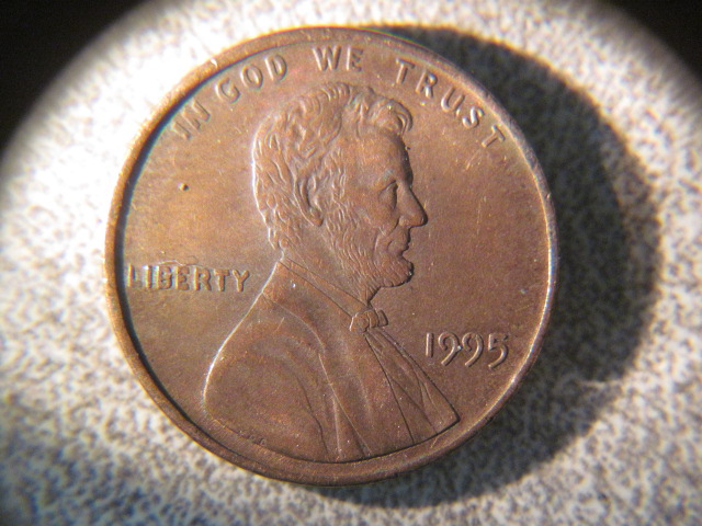 I was looking through my normal half dozen rolls of cents last Friday and I came across this little gem. A 1995 DDO. I doesn't show up as much as some I have seen. Id doesn't have much wear, there is a little luster lefton the obverse and about half left on the reverse but the letters look compromised, I'm not sure if its a weak strike or wear. I tend to think the strike is a bit weak, andway her he is. What do you think?