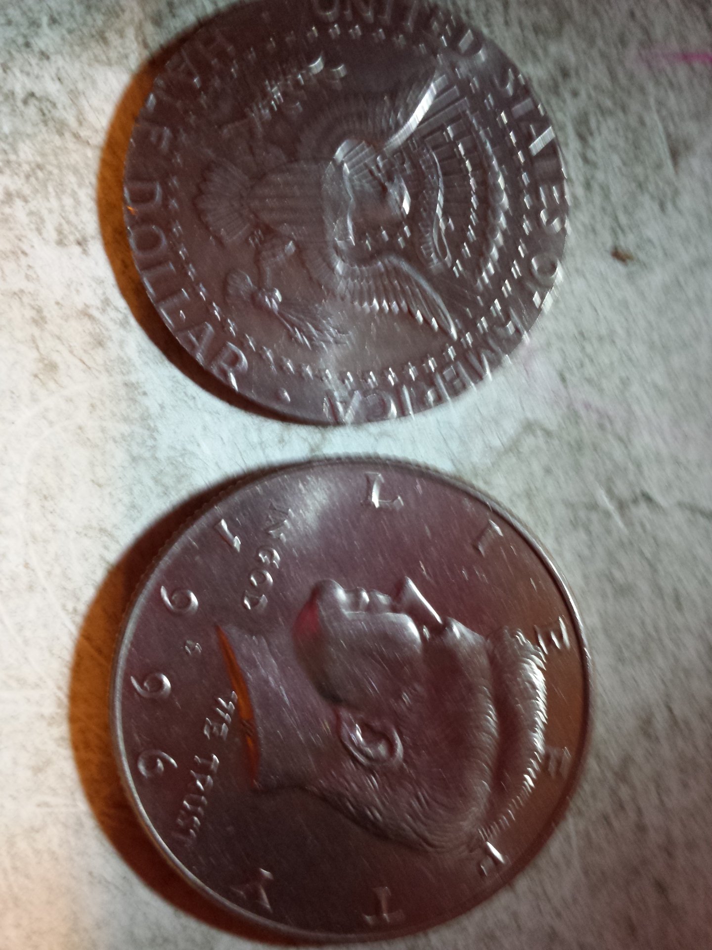 I just got a scale and weighed the coin, it was 10.6 and all my other half dollars were 11.2 and 11.3 so in disappointment, I dropped the coin and it sounded hollow of all things, to my surprise it IS. I couldn't stop until I had it opened Here it is