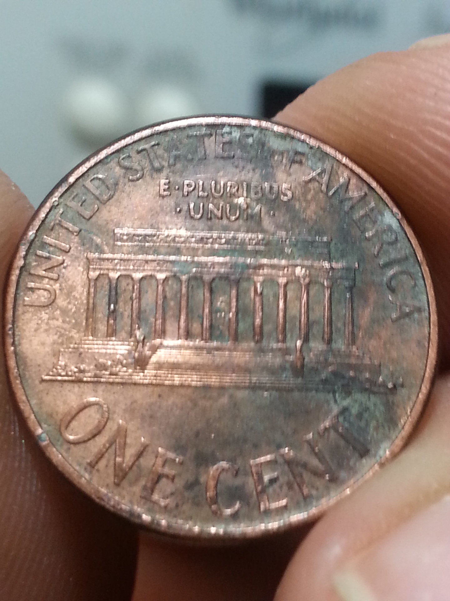 Not an error - Environmental Damage.. Looks like some of the Zinc Cents I have dug out of the ground metal detecting over the years. Especially in ground that tends to get wet.