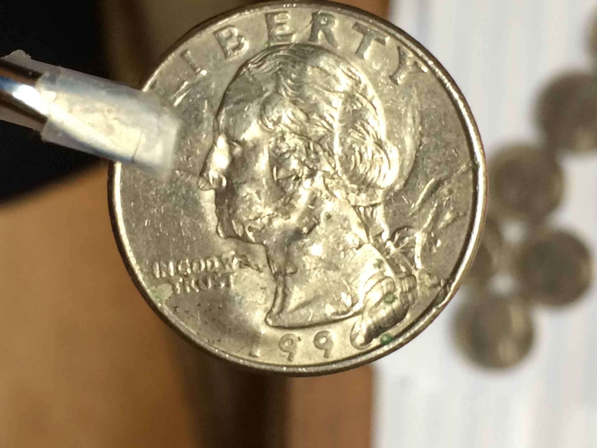 Hello. Yes, I'll take my flogging now. Any way this thing got mangled at the mint? It is a 96, not new. Don't know how to describe, but it looks like a line running from the R in liberty to the top of his head. When looking at it under magnifying glass, in hand, damage looks to have happened at very high temps(?) Not really sure, just curious before I mistakenly throw it into the recycle pile.