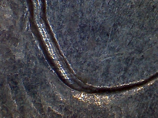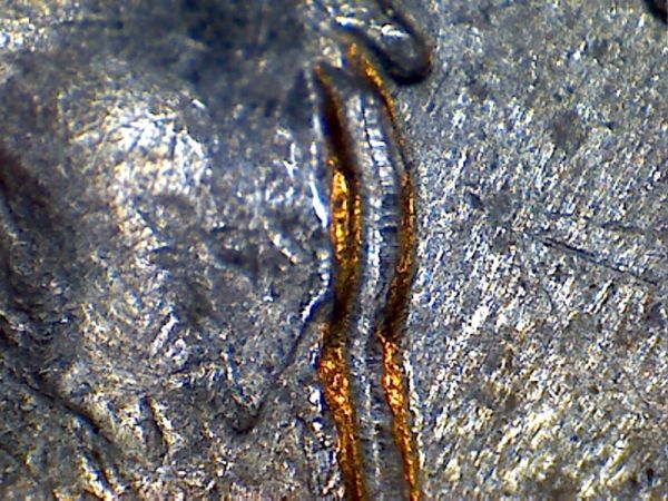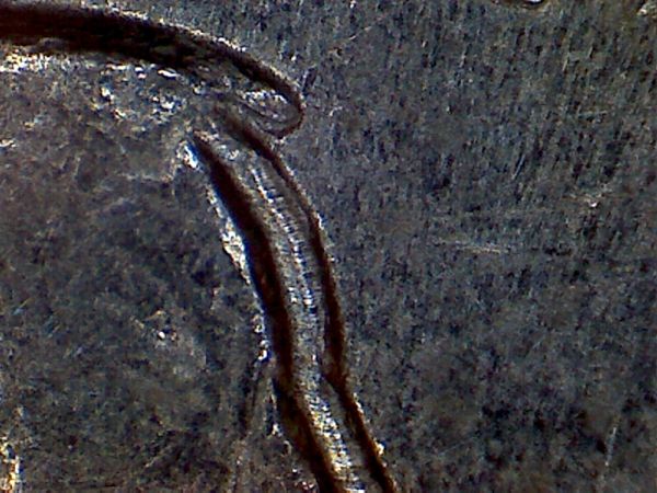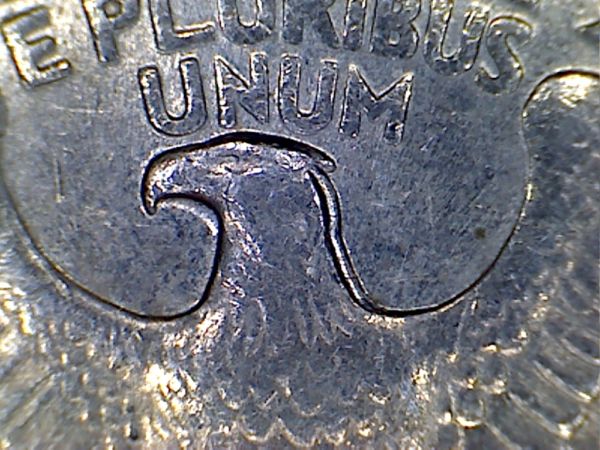 Hey there... I posted this on another site to see what people thought. I have never seen something like this before so I would like to get your opinions on it. The "break", as I will call it, is almost the same height as the eagle and rounded. The last pic is the coin illuminated with a high power sinlge source from the right. Thanks! ~ Wolfie
