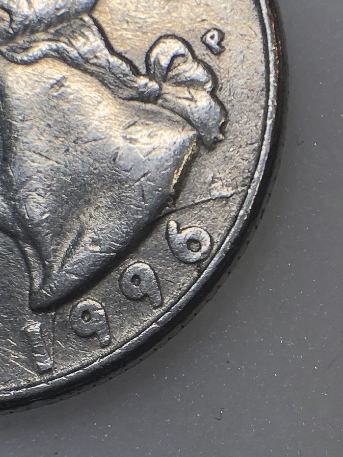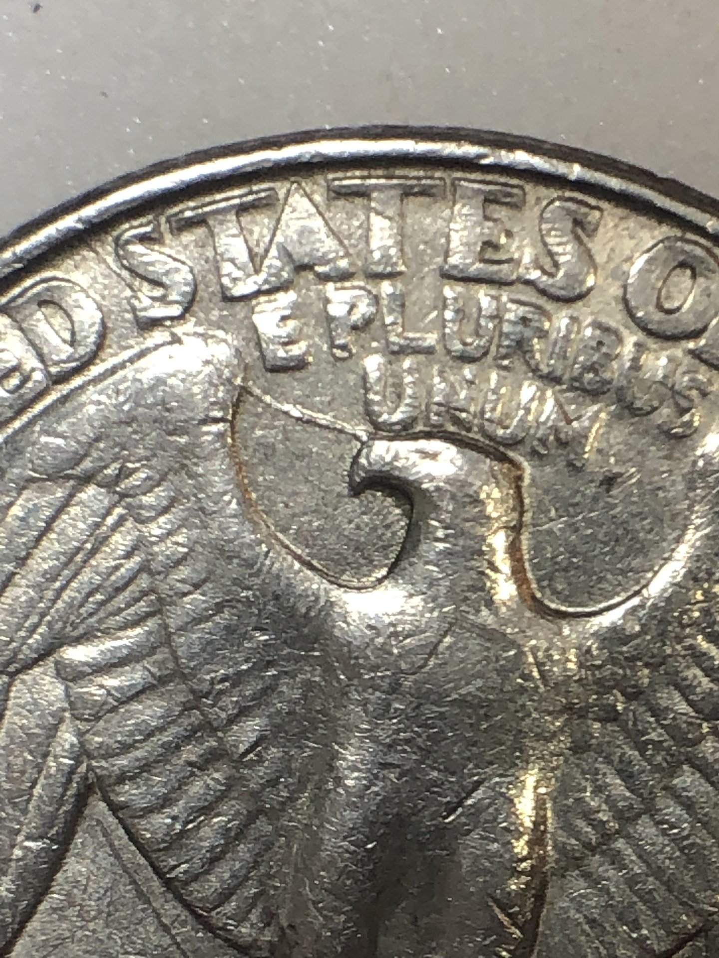 Looks like very Late Stage Die strike to me. Die crack go over the design of the eagles wing and the top off Geo's head. Noticed eye socket is worn down to the same plain as the field due to cleaning/ grinding the die face. The reverse shows signs of being damaged be a roll crimping machine.
